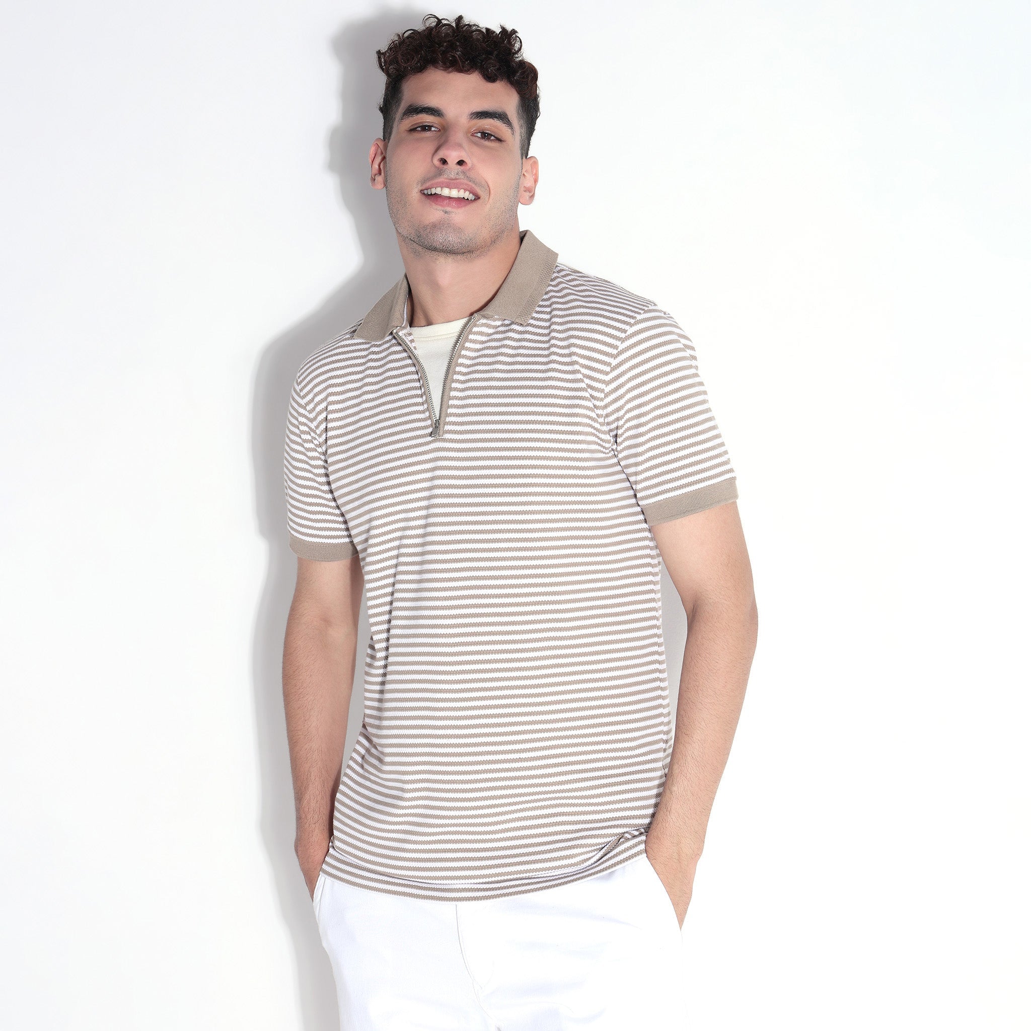 Experience the perfect blend of comfort and style with the Aviator Polo Regular Fit Stripes T-Shirt. Crafted from a soft cotton-polyester mix, this t-shirt offers a breathable and lightweight feel, making it ideal for everyday wear. The classic striped pattern adds a touch of timeless elegance, while the polo neck provides a sophisticated edge. Whether you're heading to a casual outing or a relaxed office environment, this t-shirt seamlessly fits into any setting.