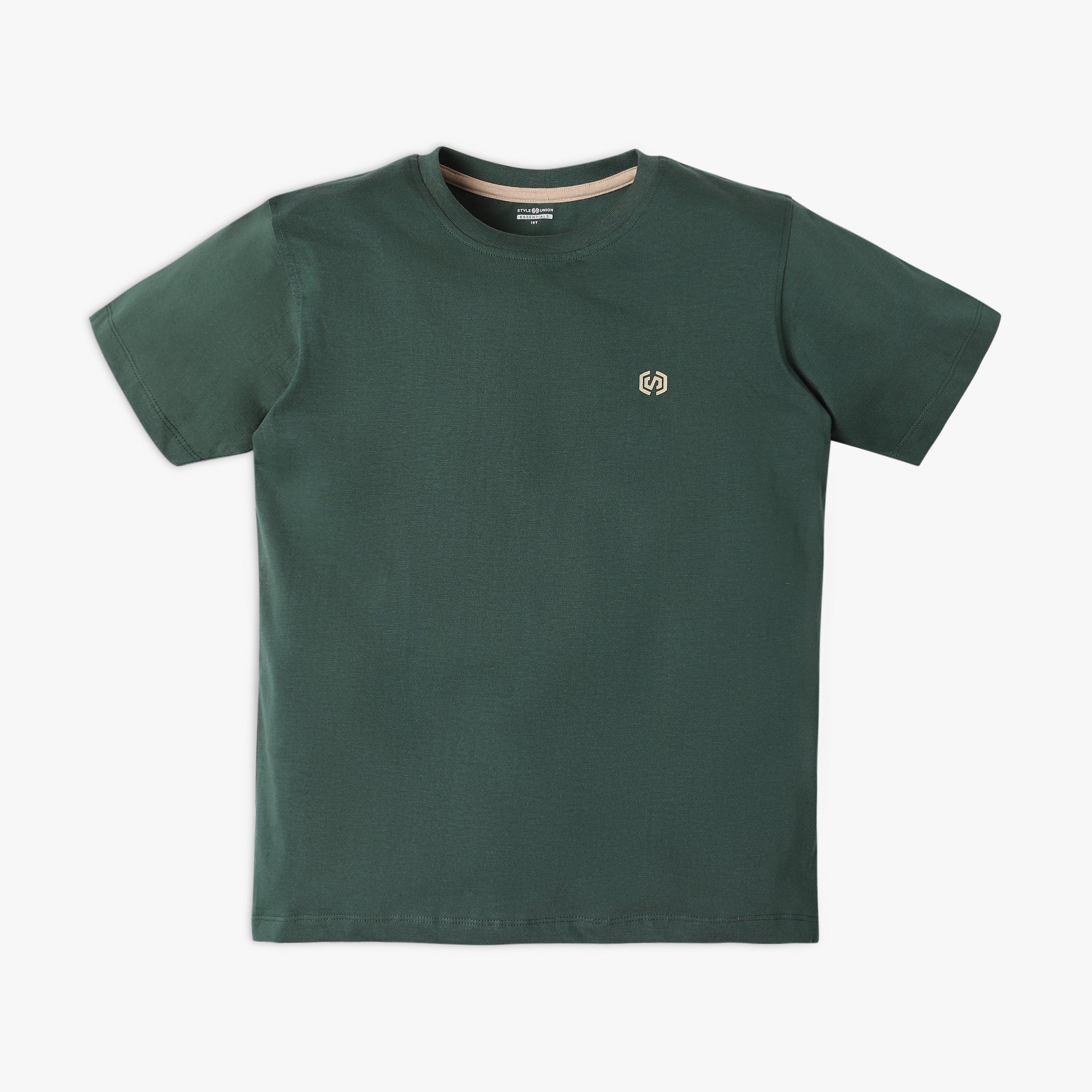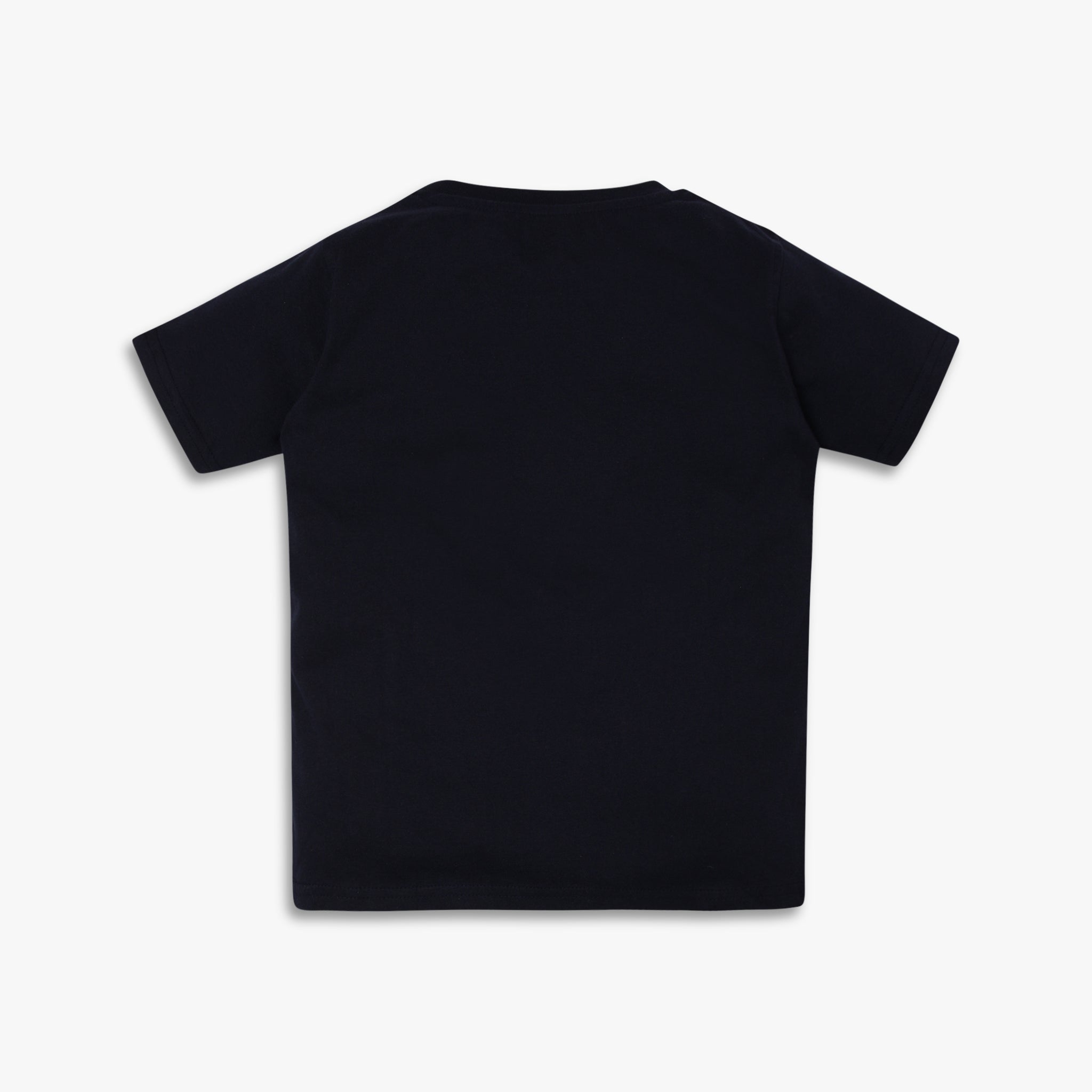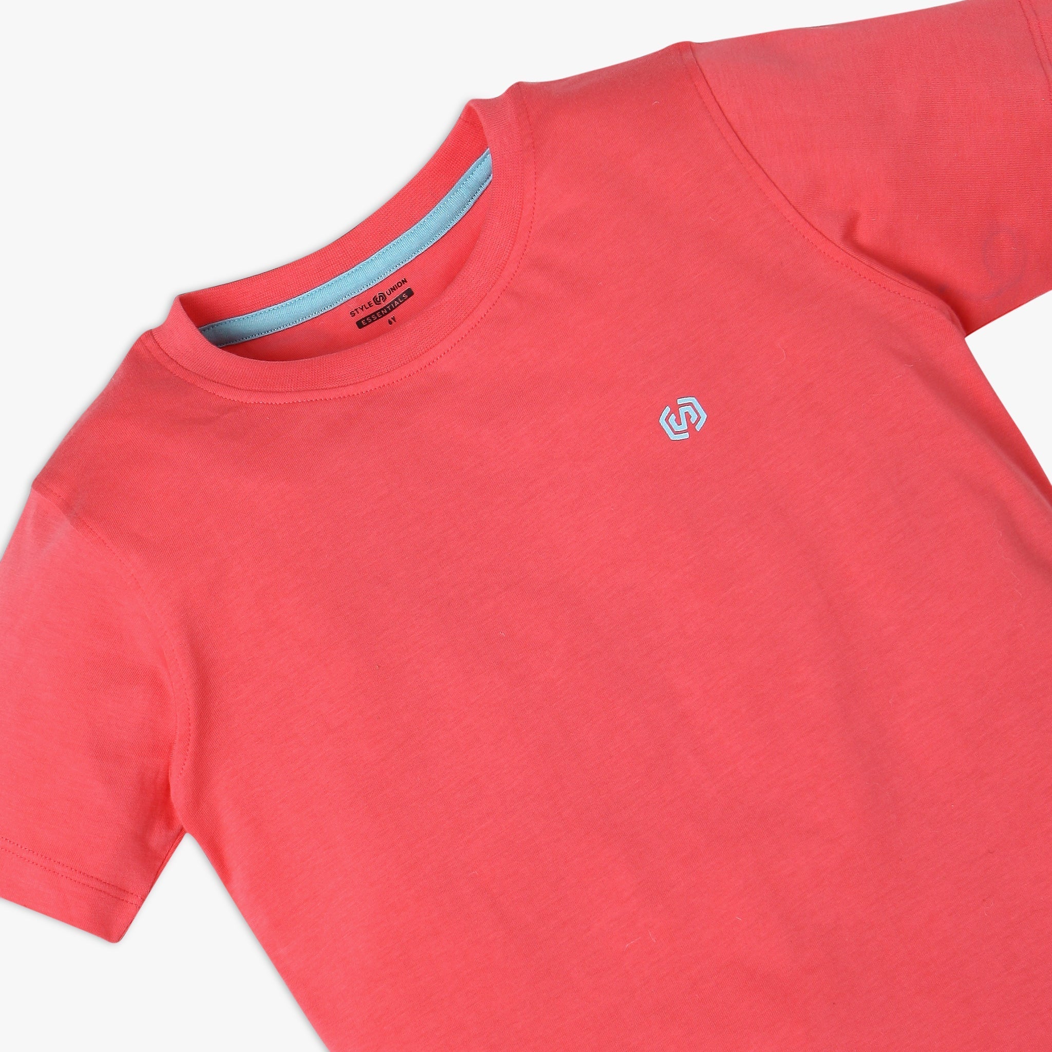 This knitted boys t shirt theme solid pattern t-shirt has a crew neck and half sleeve. Made from cotton, your kid's feel comfortable wearing a product.