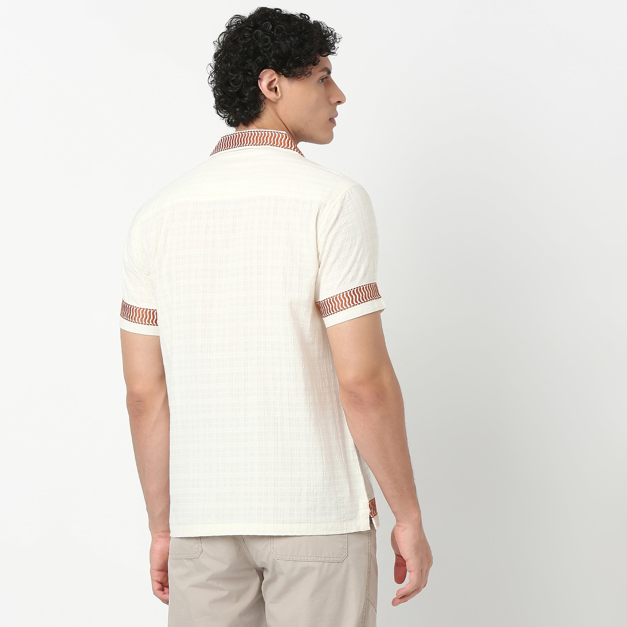 Camp Collar Embroidered Half Sleeve Cuban Shirt