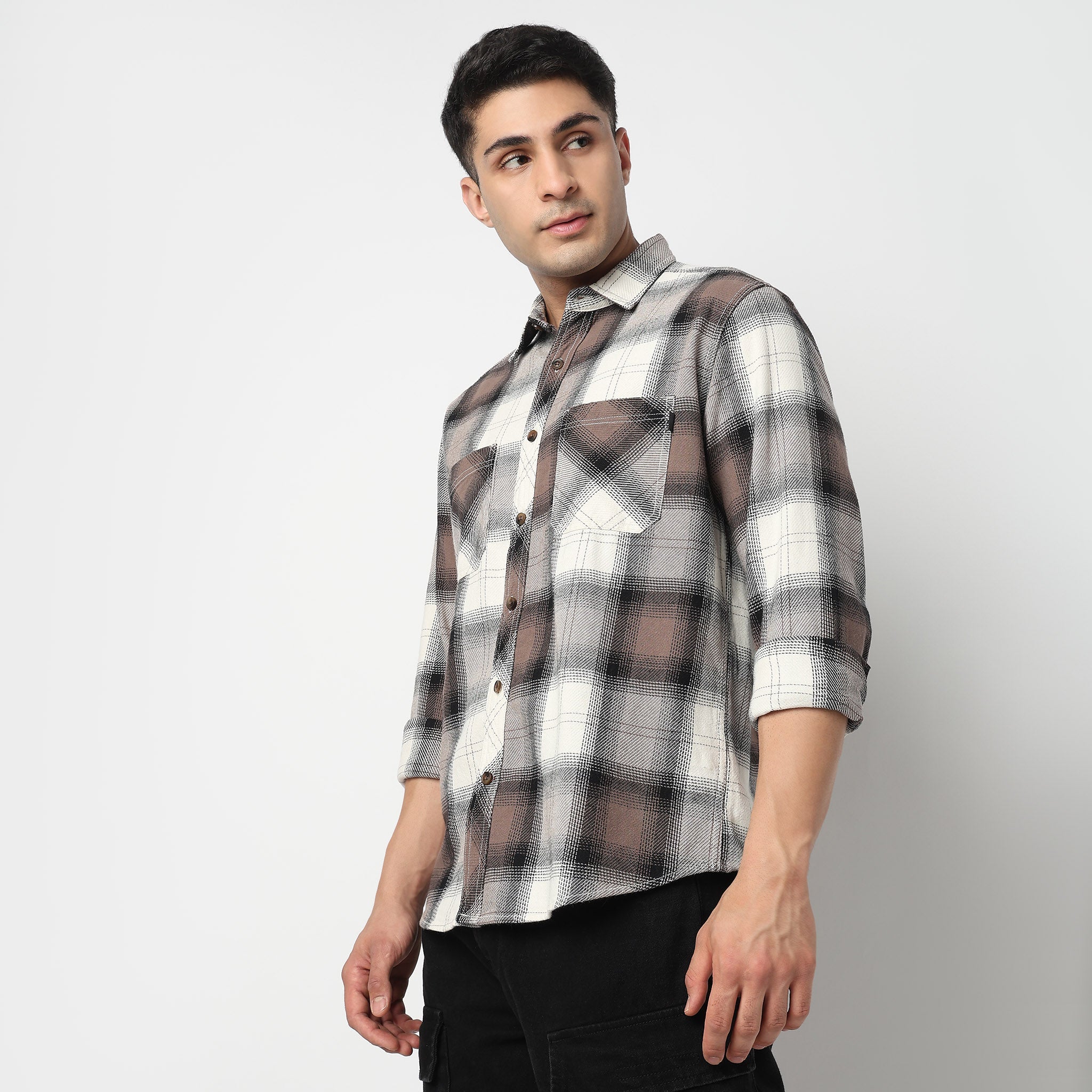 Elevate your casual wardrobe with our Cotton Double Pocket Checkered Lumber Jack Shirt. Crafted from high-quality woven cotton, this shirt combines comfort with style, perfect for any occasion.