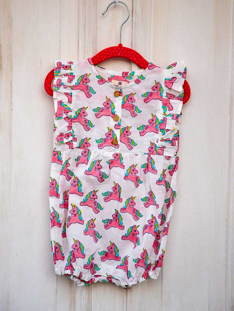 Unicorn Block Printed Cotton Top & Pyjama Set