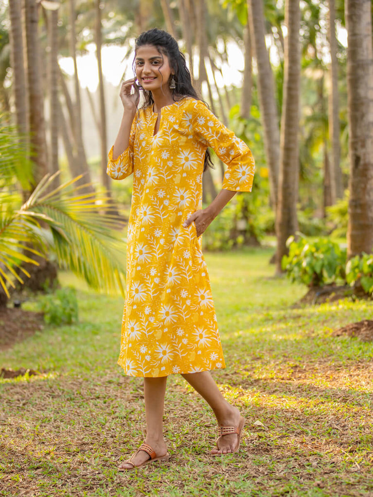 Sweetheart Organic Cotton Block Printed Tiered Dress