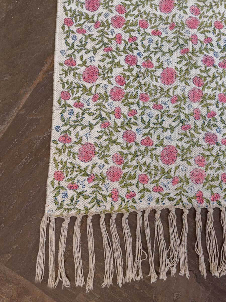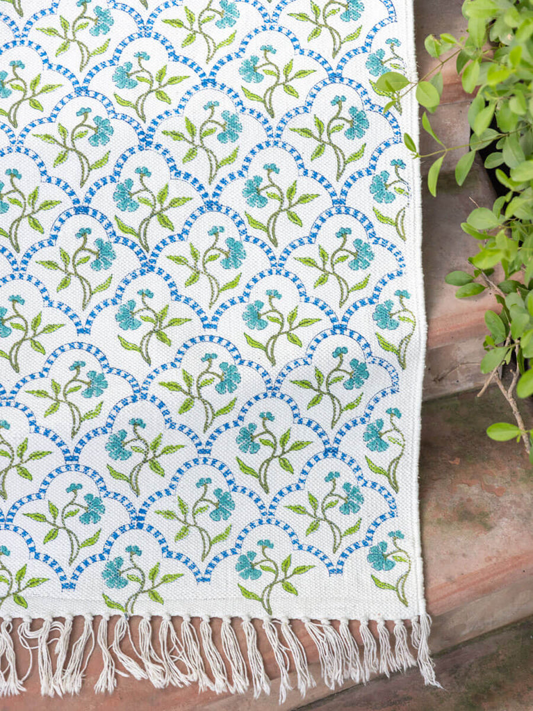Hibiscus Block Printed Cotton Dhurrie Rug