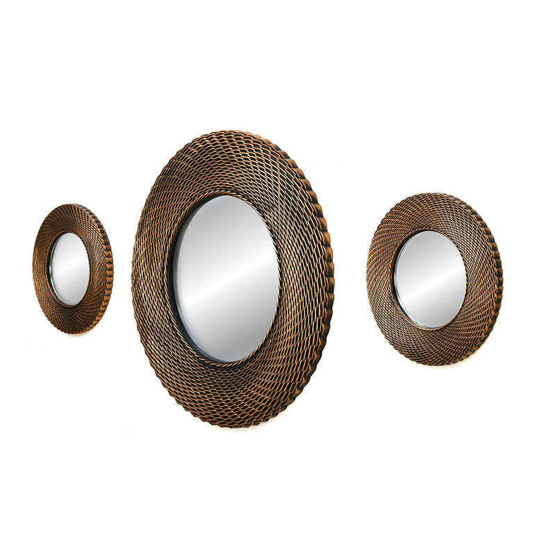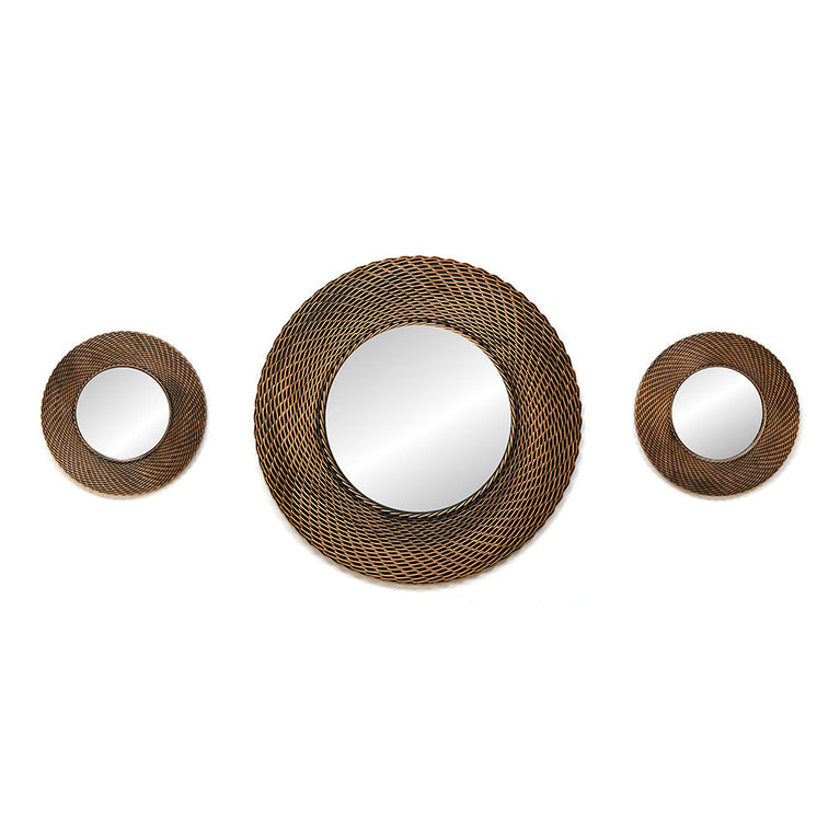 Cirque Round Decorative Wall Mirror Set of 3 (Brown)