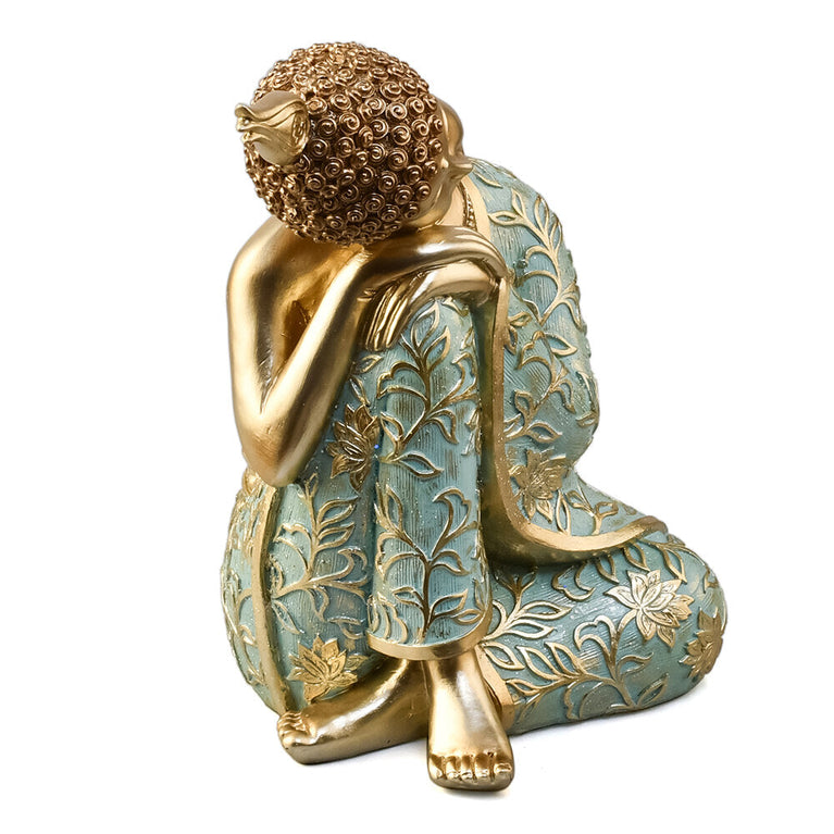 Buddha Resting On Knee Decorative Polyresin Showpiece (Mint & Gold)