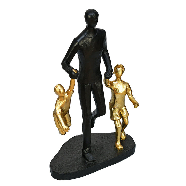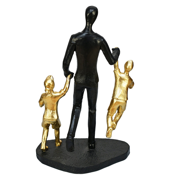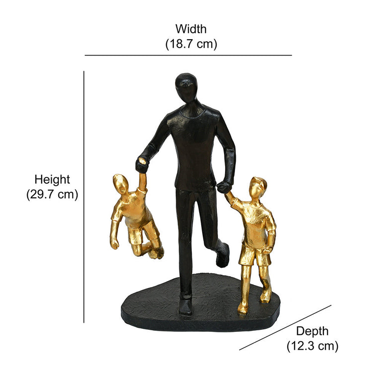 Dad With Two Kids Polyresin Decorative Showpiece (Black & Gold)