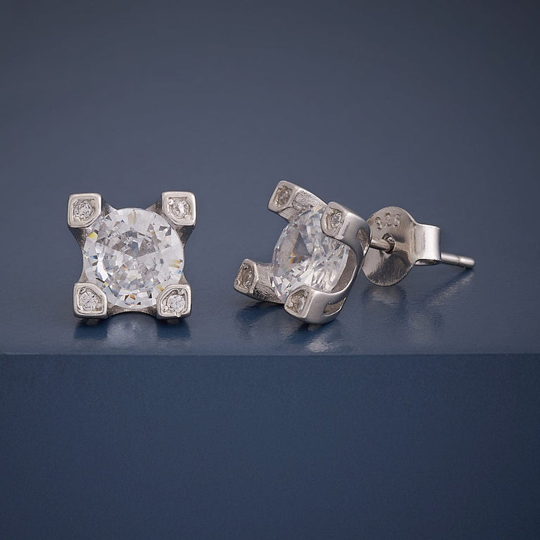 Kushal's Fashion Jewellery 92.5 Pure Silver EarringAdorned with zircon stones, these ultra-modern stud earrings are exceptional in quality. We have made these earrings with intricate designs. We offer three different polish options such as rhodium, rose-gold and gold. The earrings have a push-back design for your comfortable wear. With 92.5 silver as the base material, don’t worry about quality.