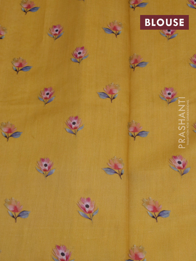 Banarasi silk saree mustard yellow with allover zari woven brocade weaves and floral digital printed border