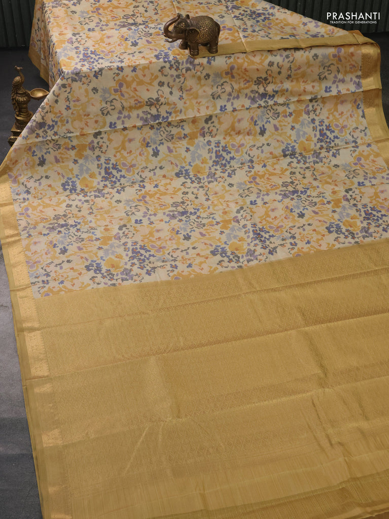 Bangalori semi silk saree beige and grey with allover ikat butta weaves and zari woven border