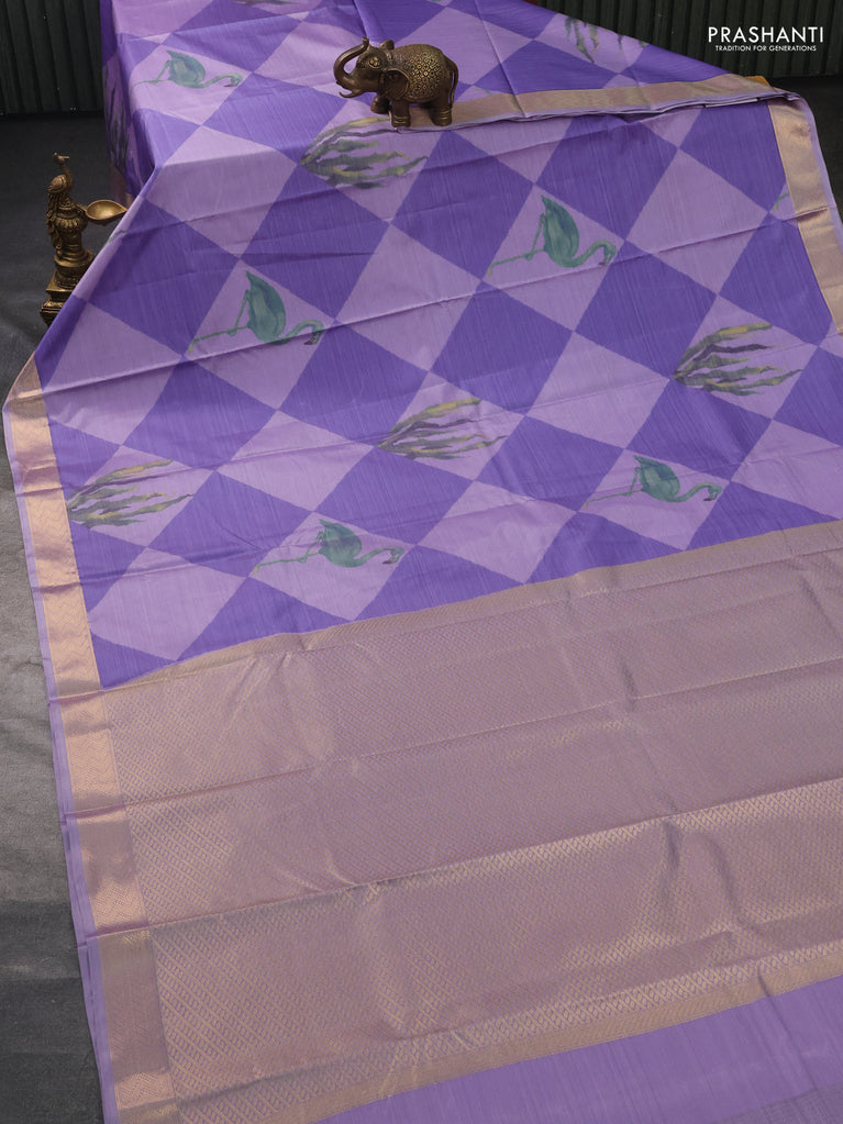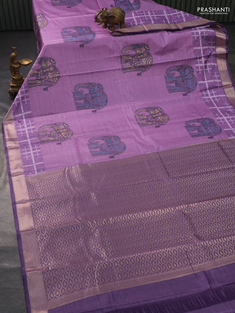 Bangalori semi silk saree mild lavender with allover elephant butta ikat weaves and zari woven border