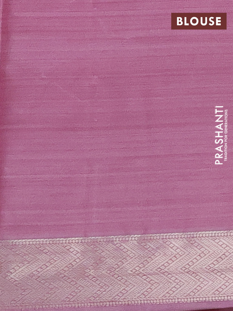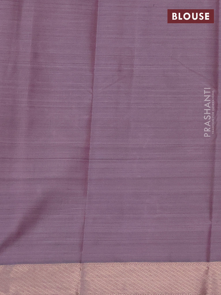 Bangalori semi silk saree pastel lavender with elephant butta ikat weaves and zari woven border