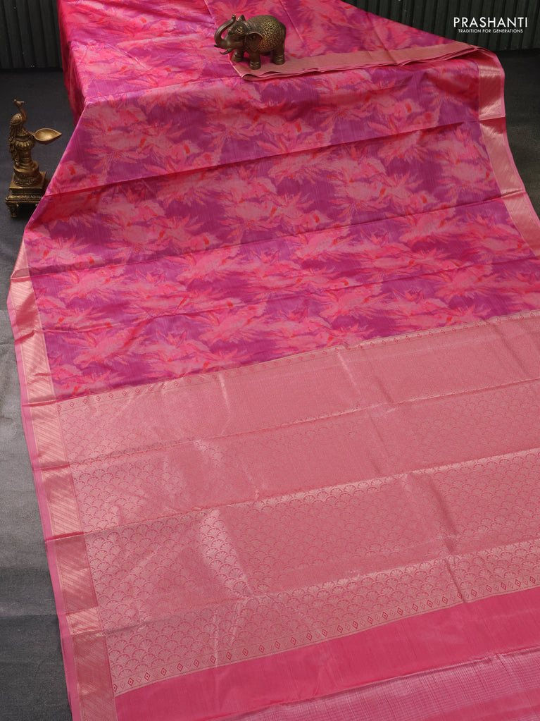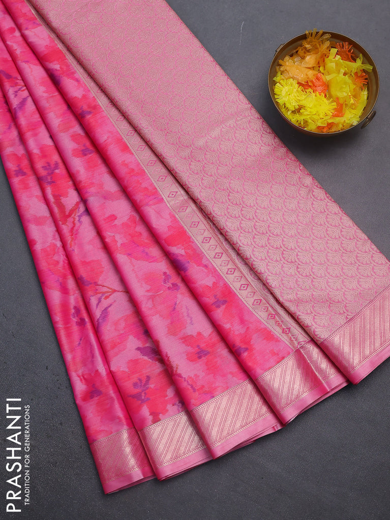 Bangalori semi silk saree pastel pink and magenta pink with allover ikat weaves and zari woven border