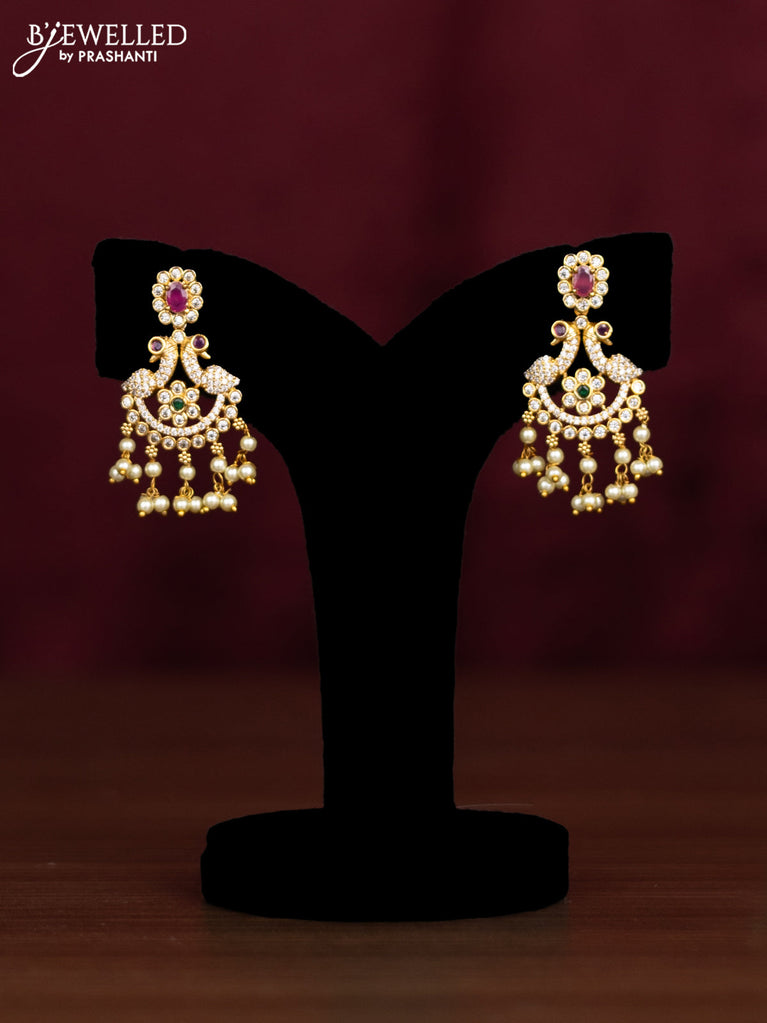 Antique guttapusalu haaram peacock design with kemp & cz stones and pearl hangings