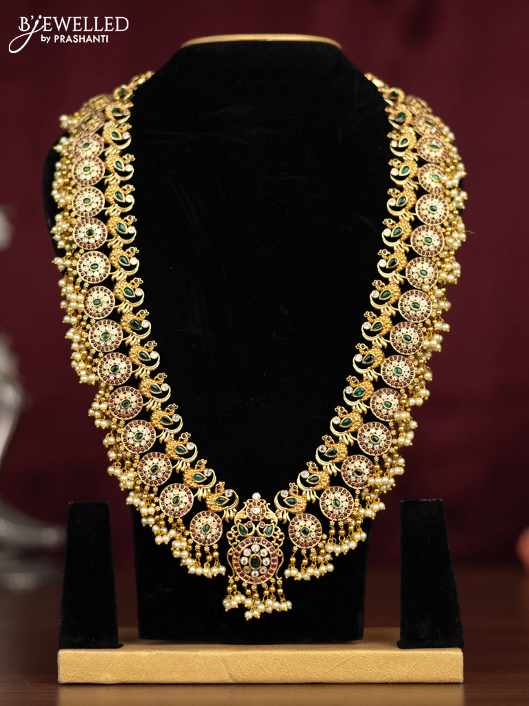 Antique guttapusalu haaram peacock design with kemp & cz stones and pearl hangings without earring