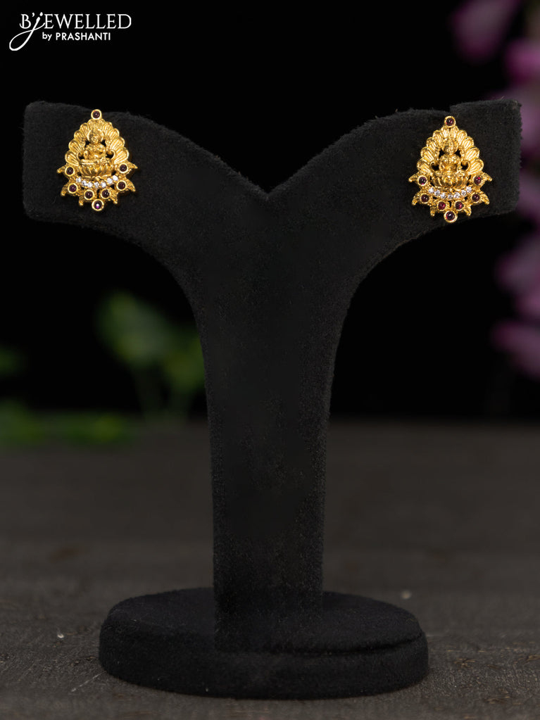 Antique pendant set lakshmi design with pink kemp stones and golden beads hanging
