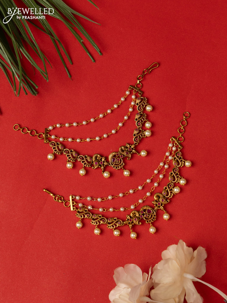 Antique triple layer mattal with pearl hangings