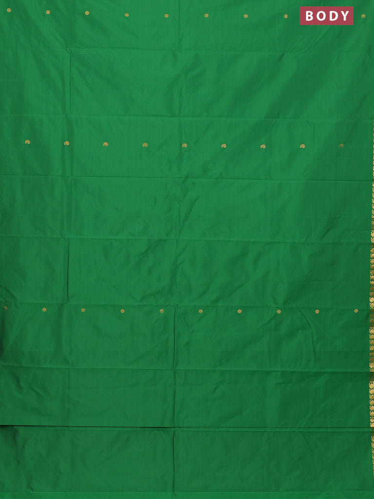 Arani semi silk saree green with zari woven buttas and paisley zari woven butta border