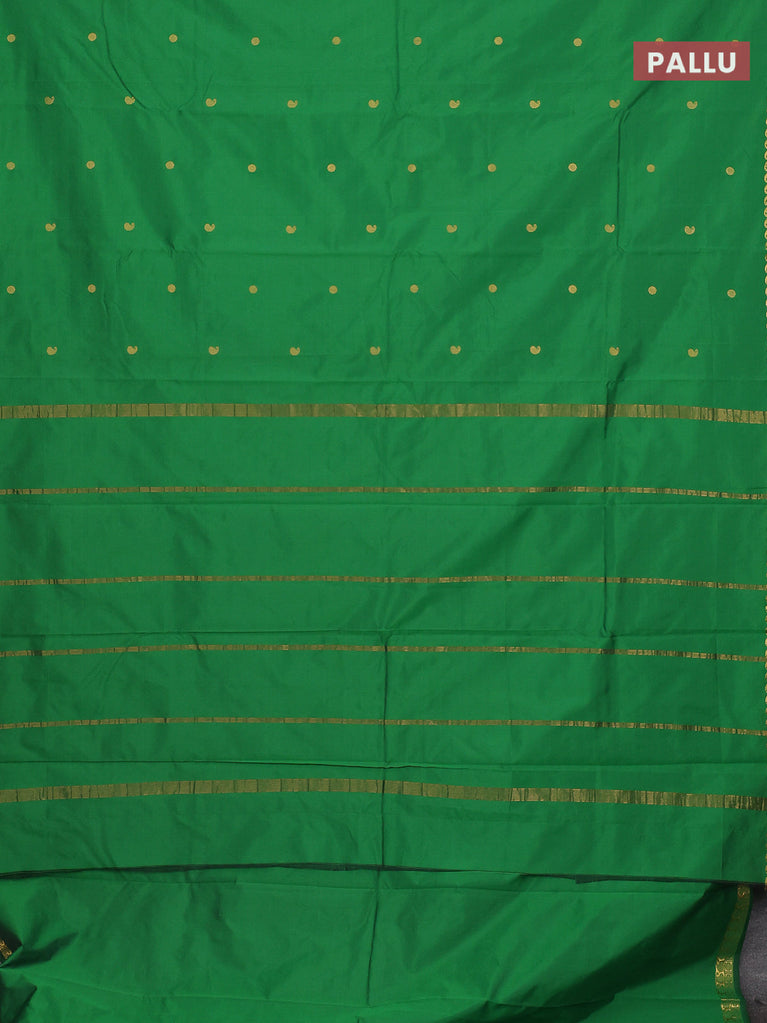 Arani semi silk saree green shade with zari woven buttas in borderless style