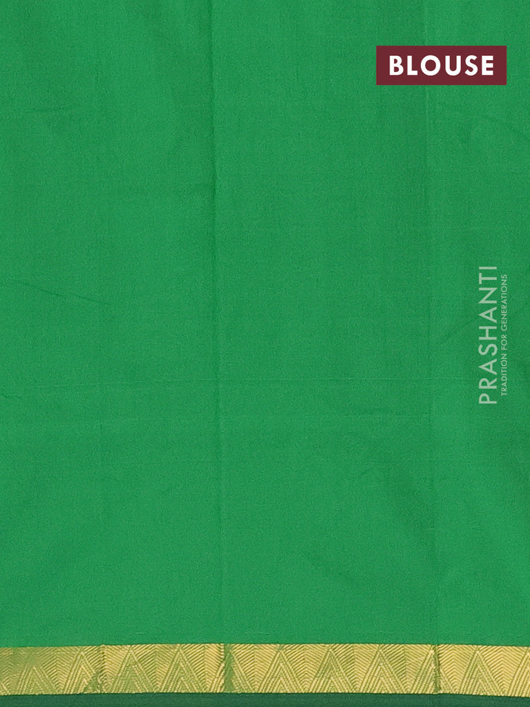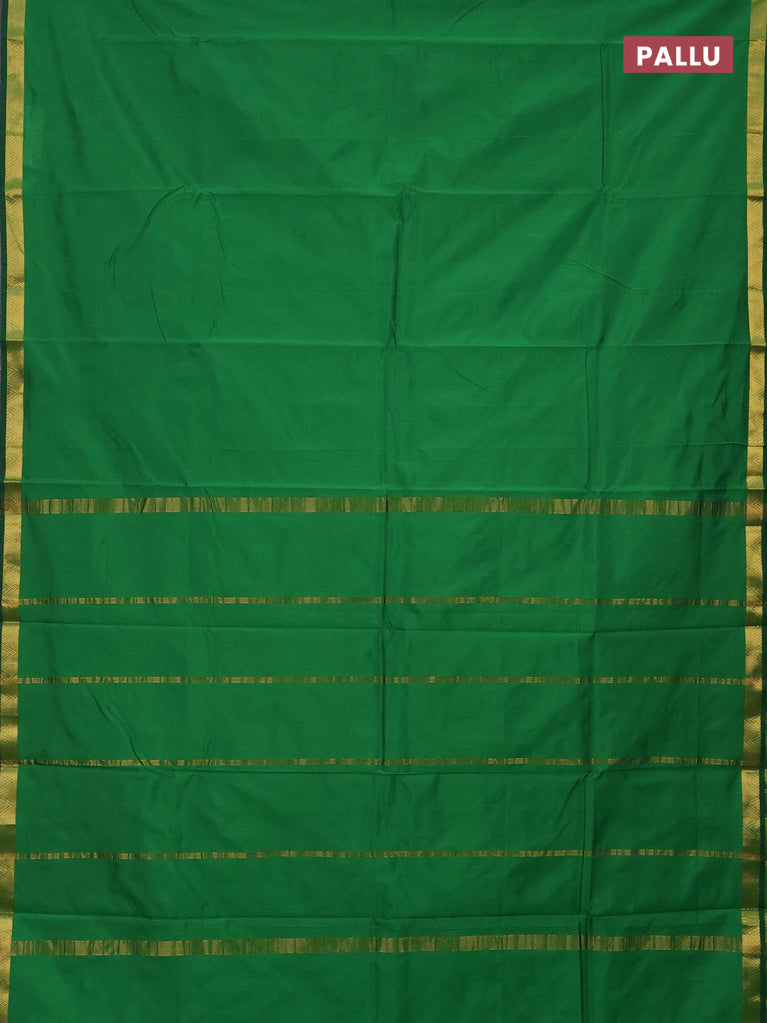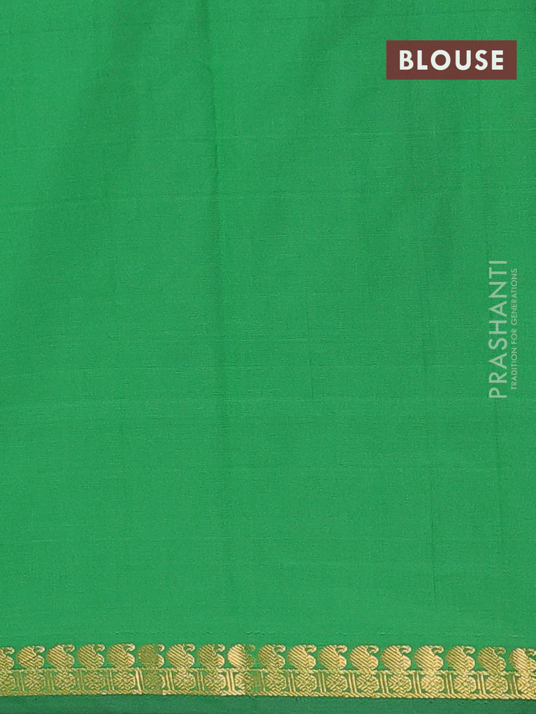 Arani semi silk saree green with plain body and small zari woven border