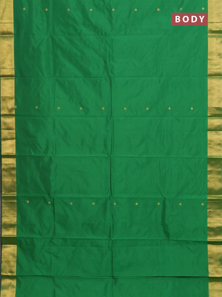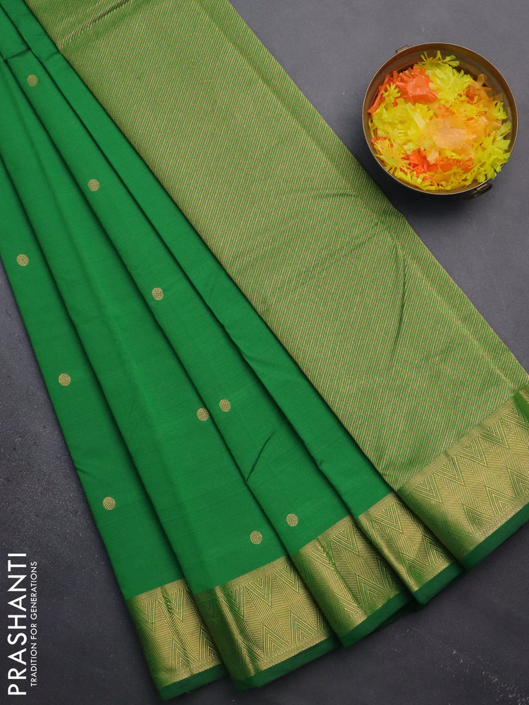 Arani semi silk saree green with zari woven thilak buttas and zari woven border