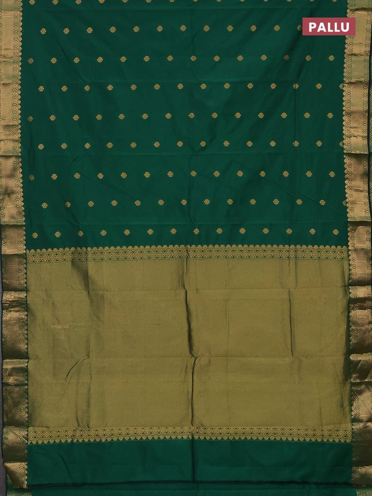 Arani semi silk saree green with zari woven rudhraksha buttas and zari woven border