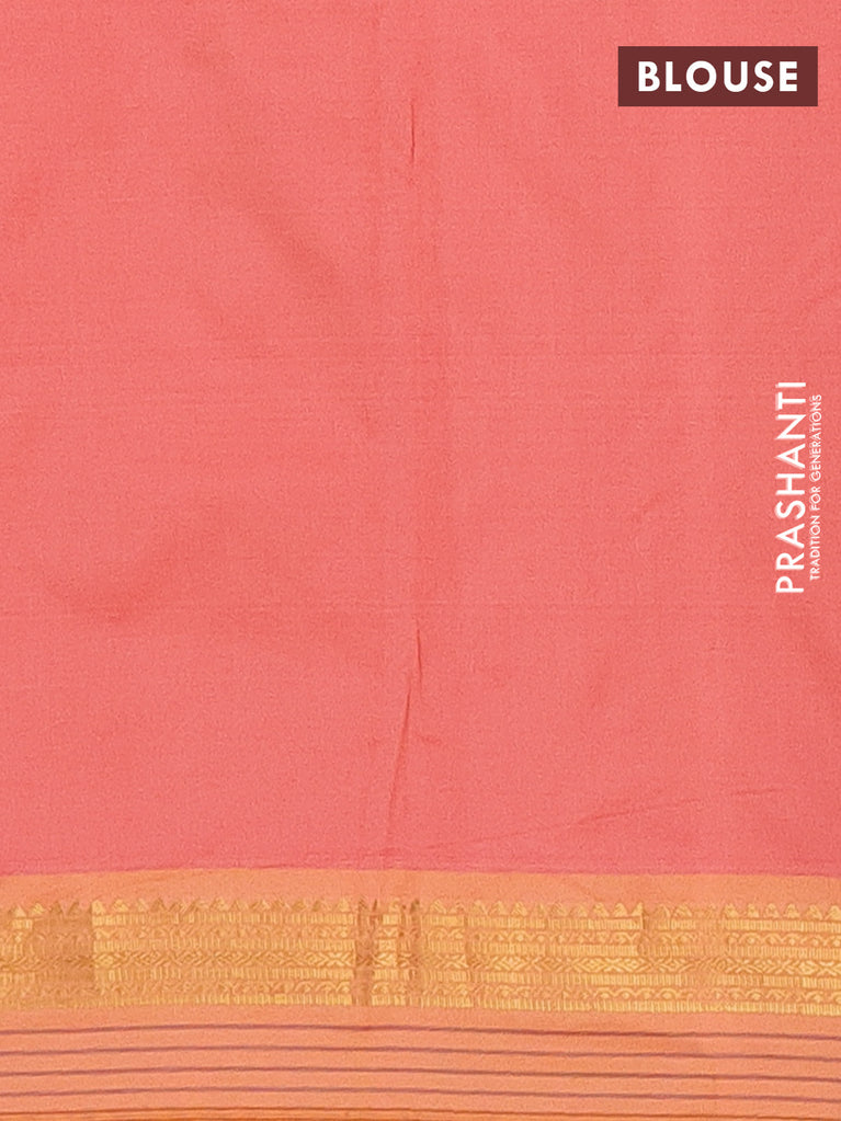 Arani semi silk saree peach pink shade with zari woven temple buttas and zari woven border