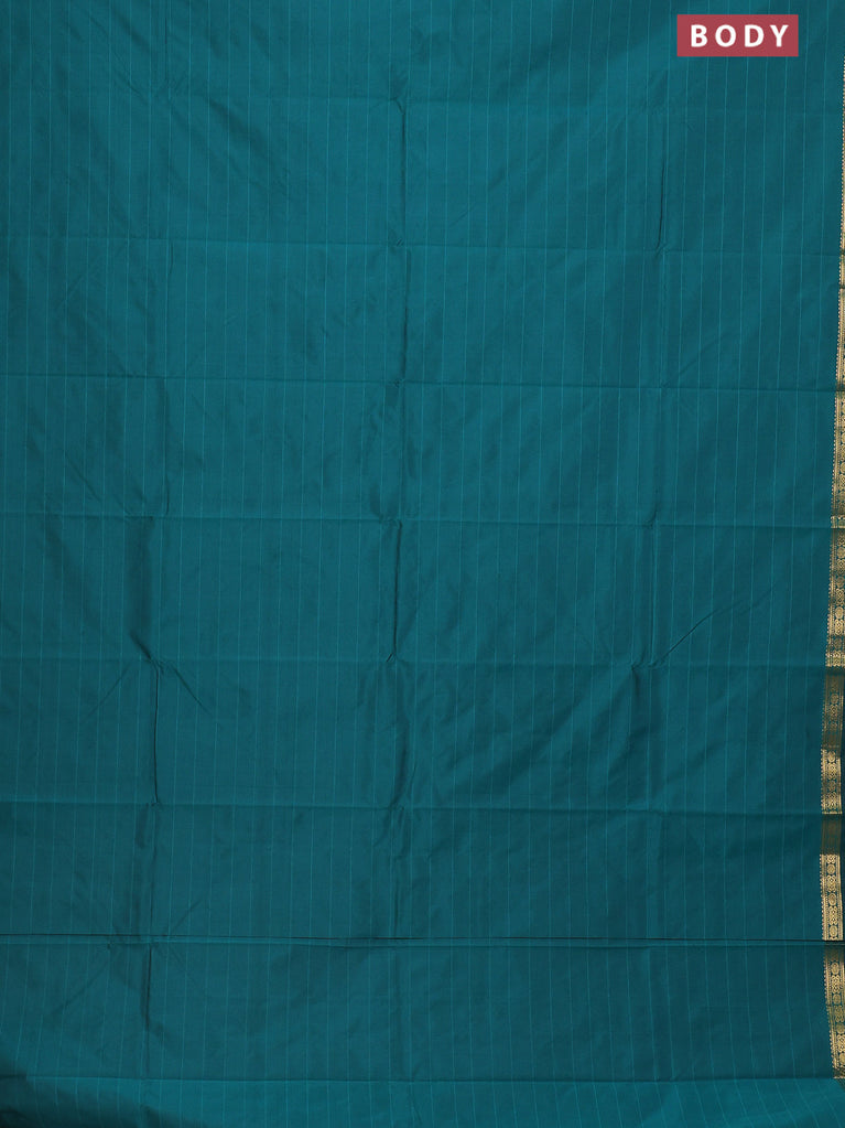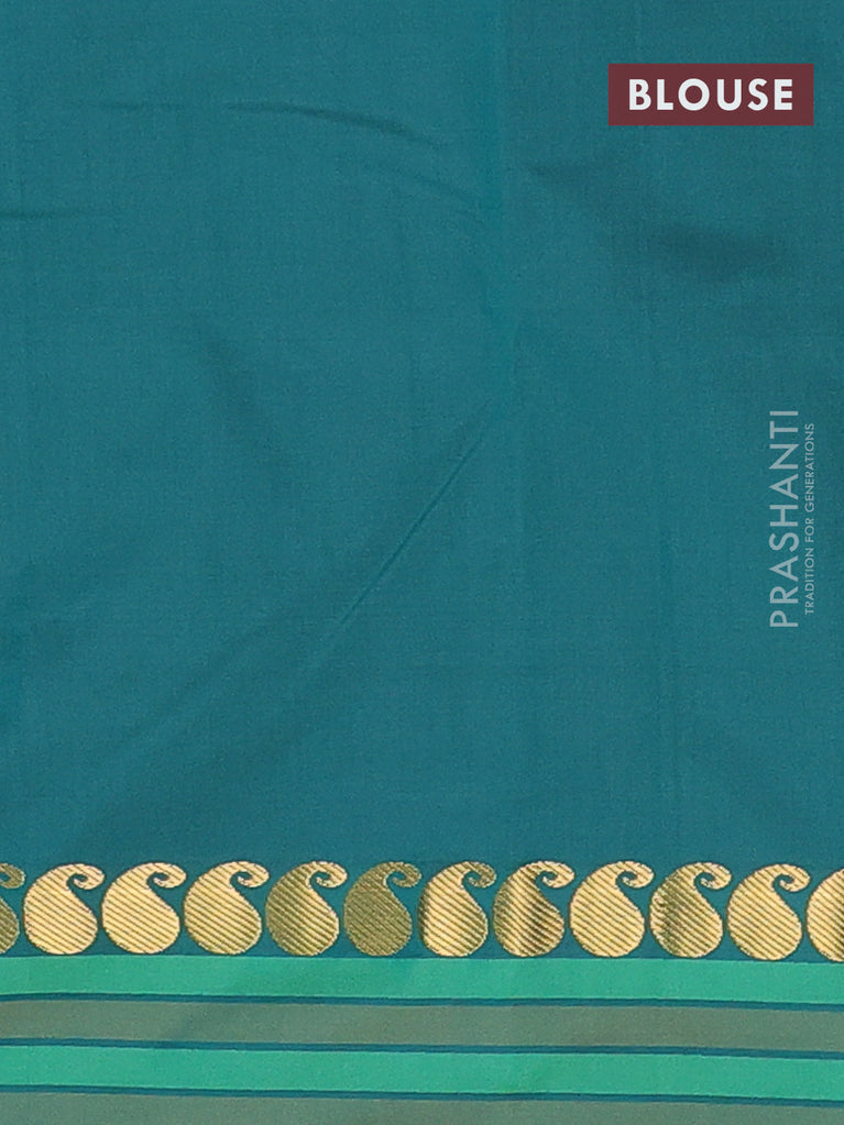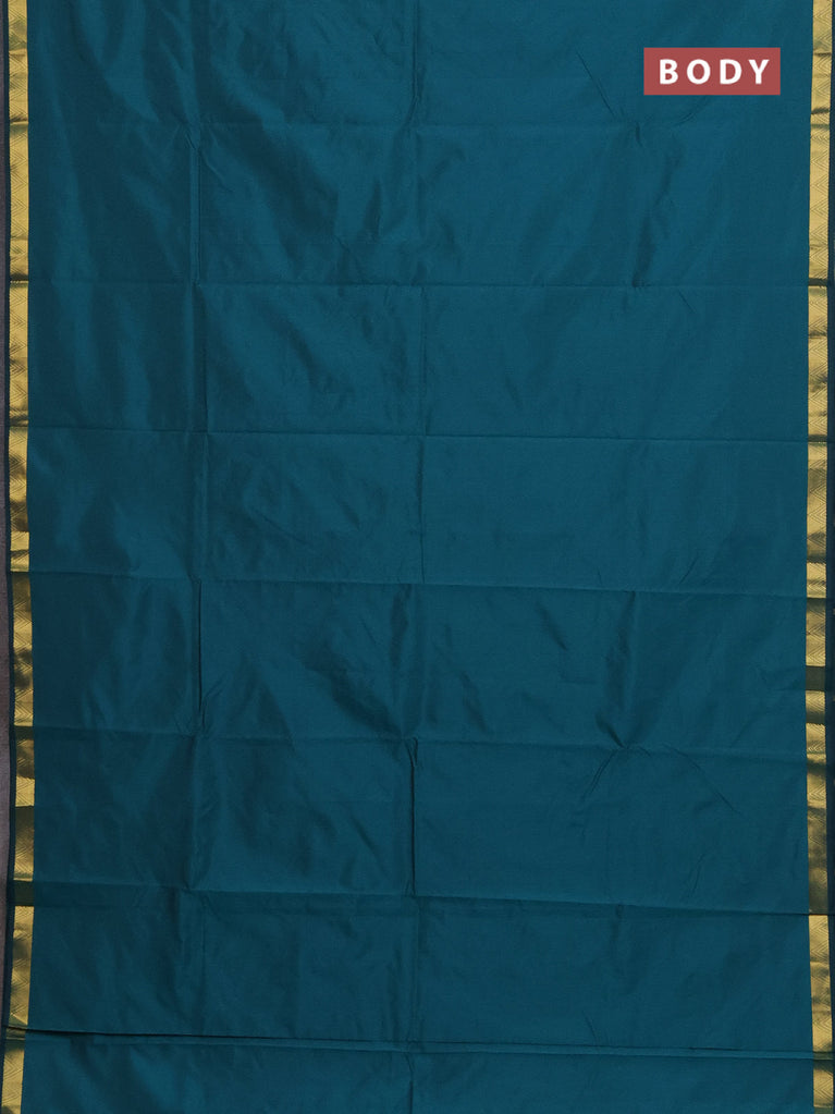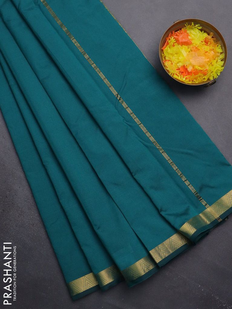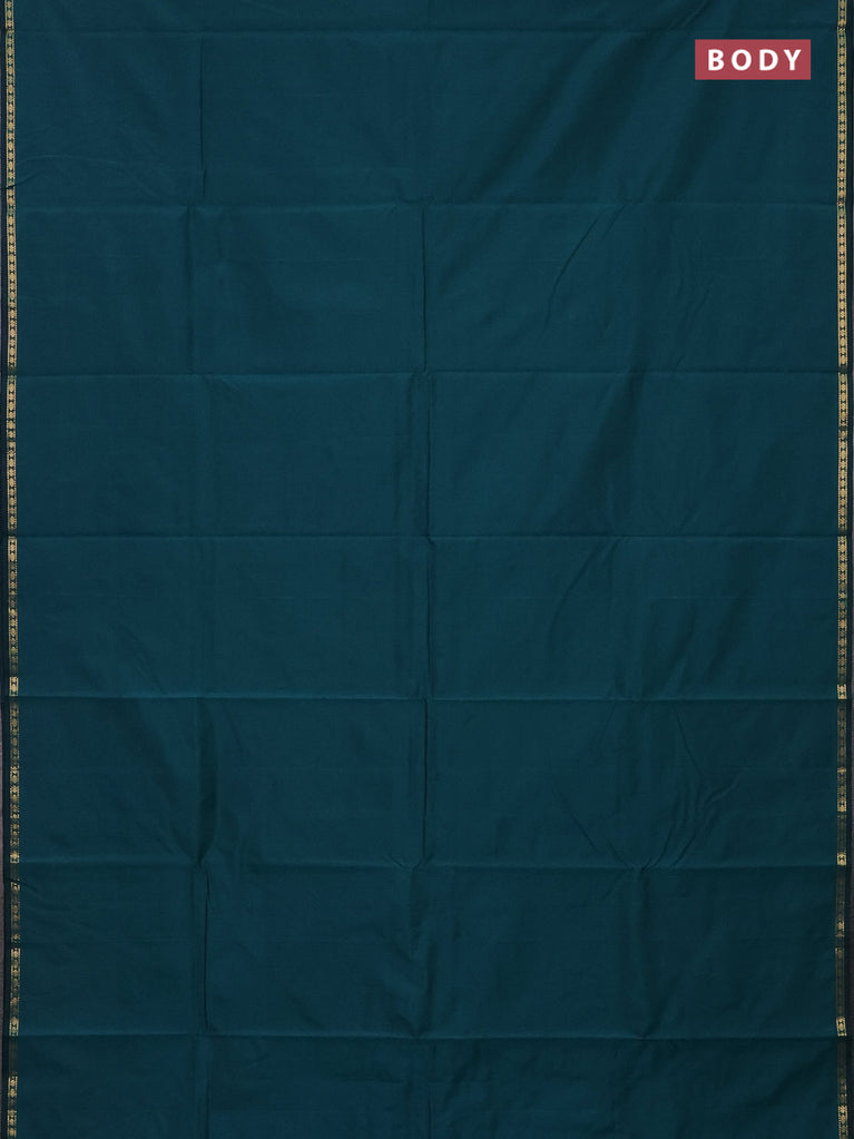 Arani semi silk saree peacock green with plain body and small zari woven border