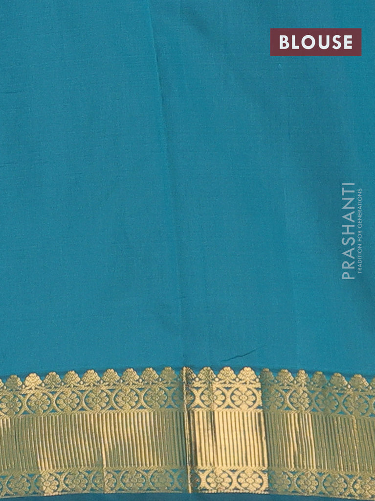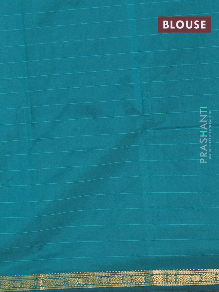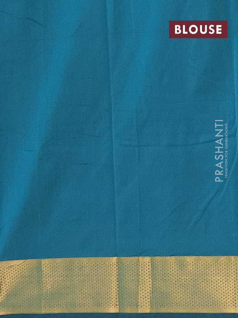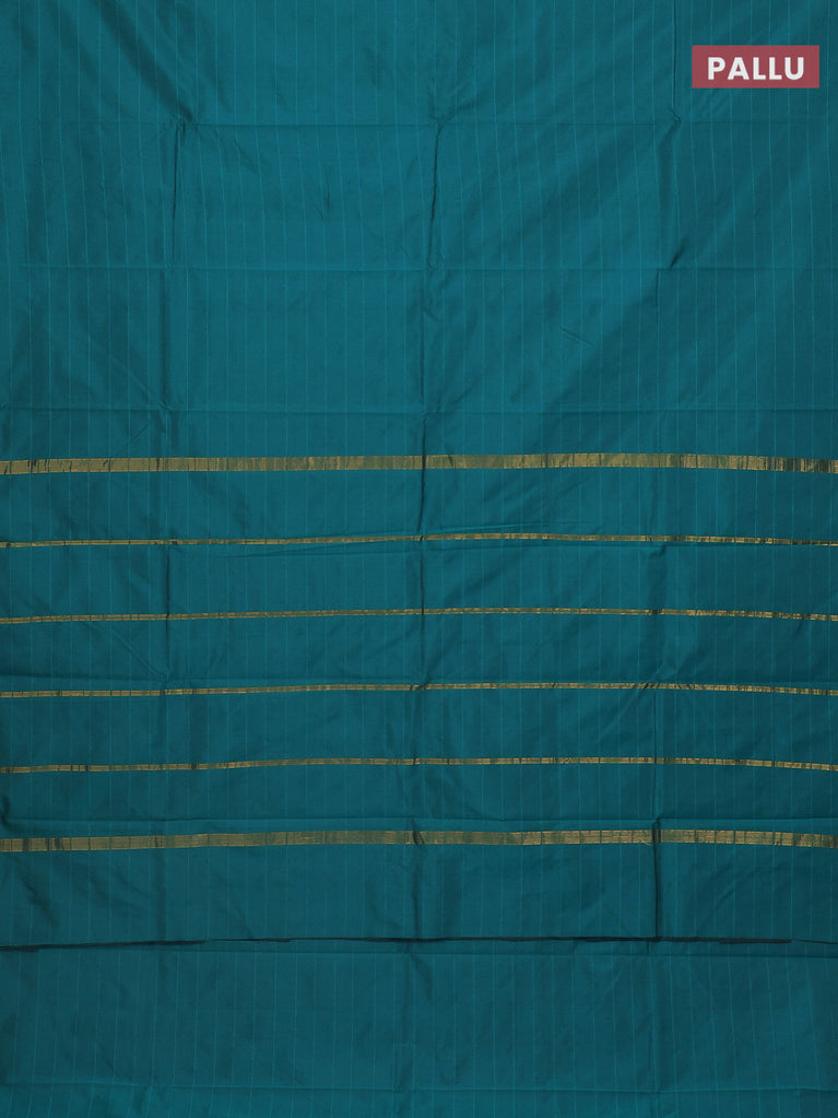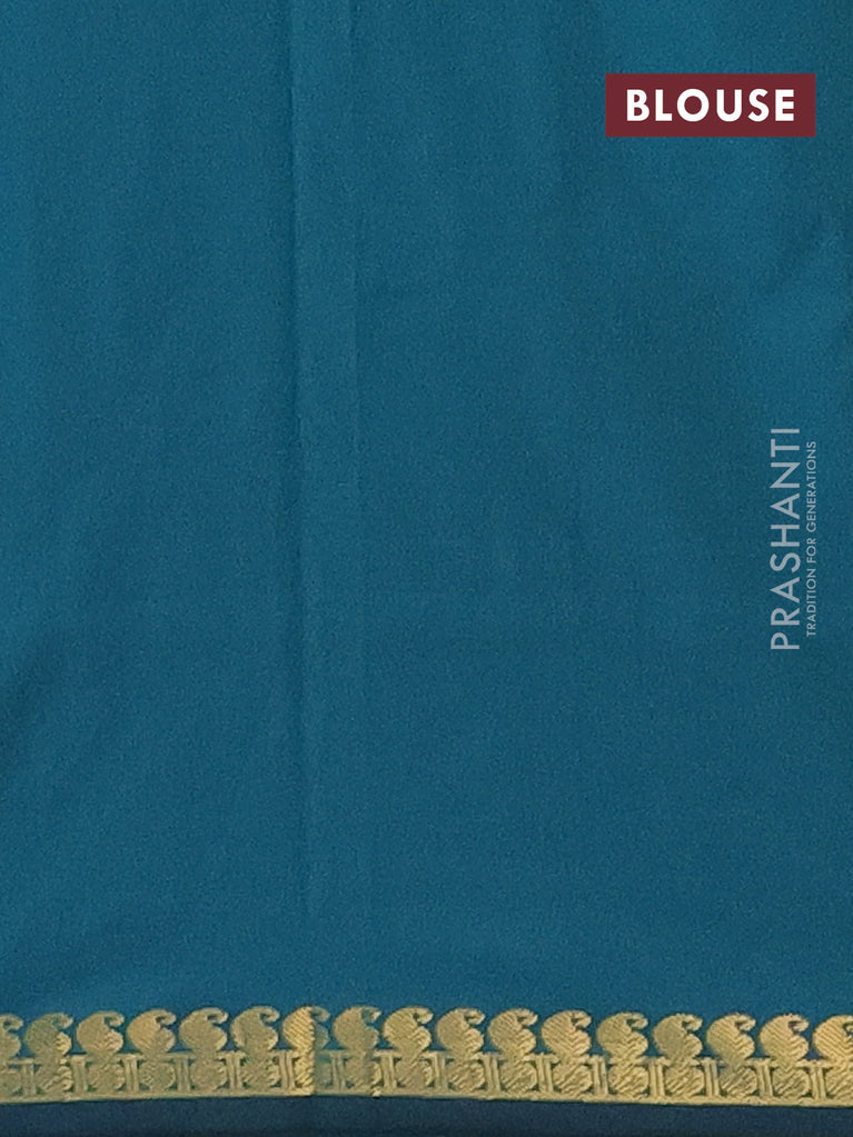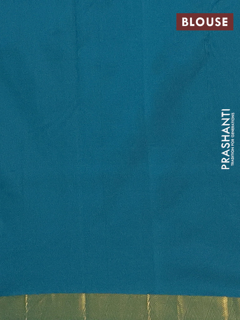 Arani semi silk saree peacock green with plain body and small zari woven border