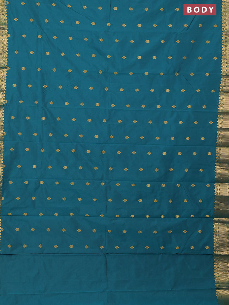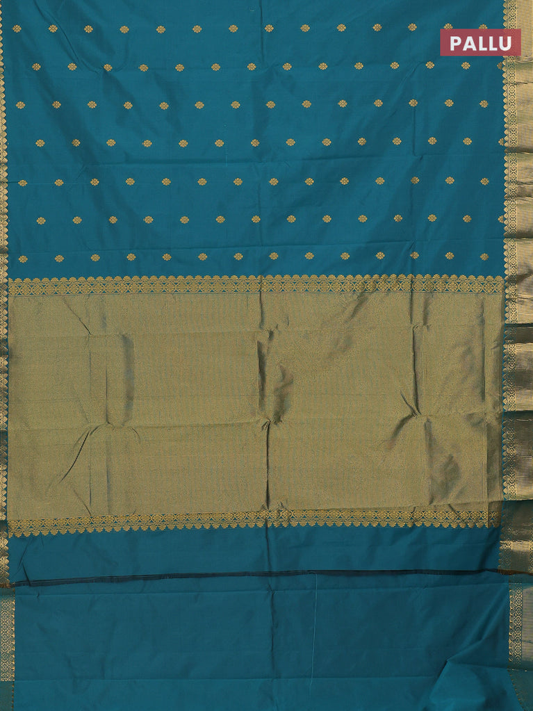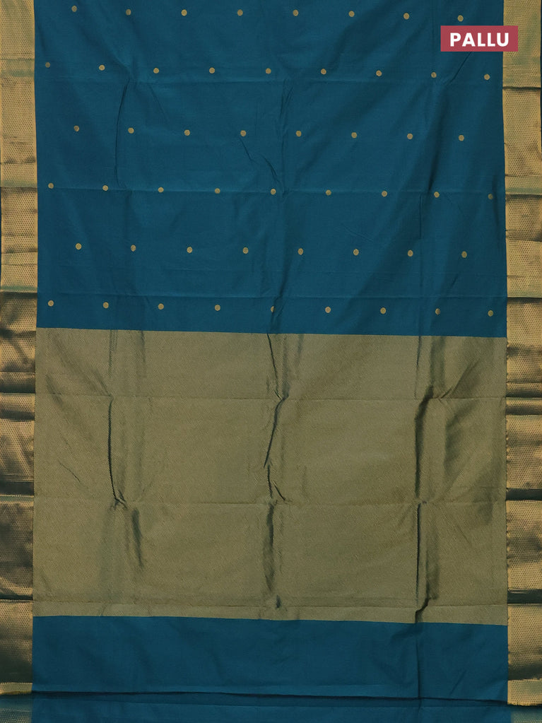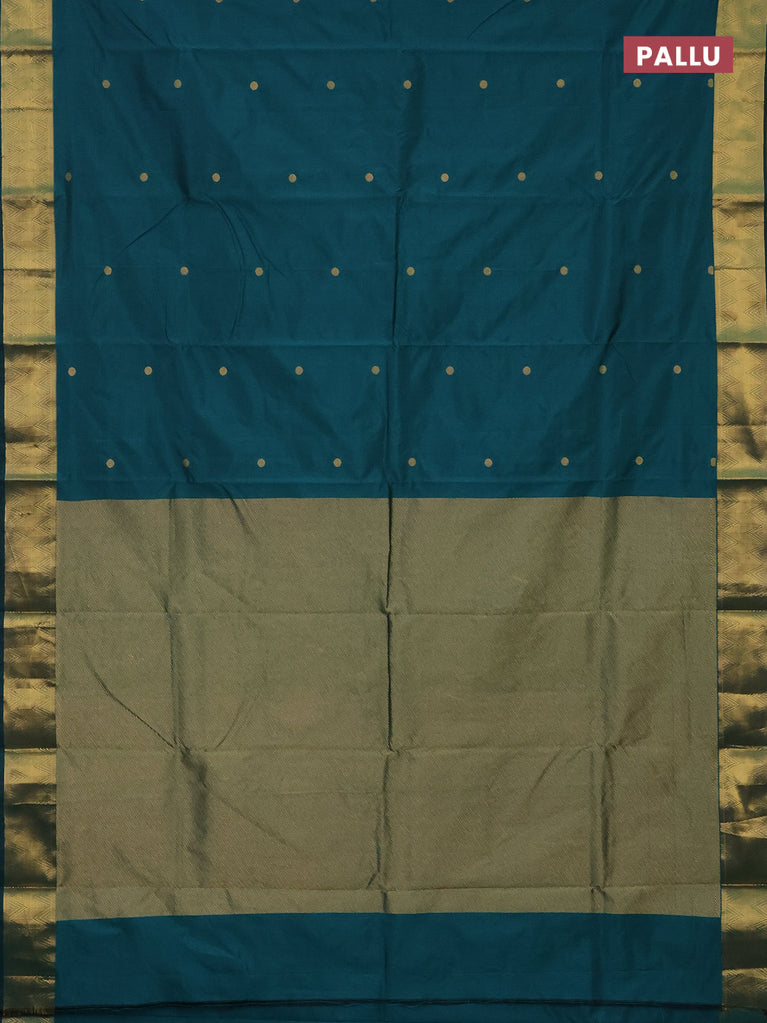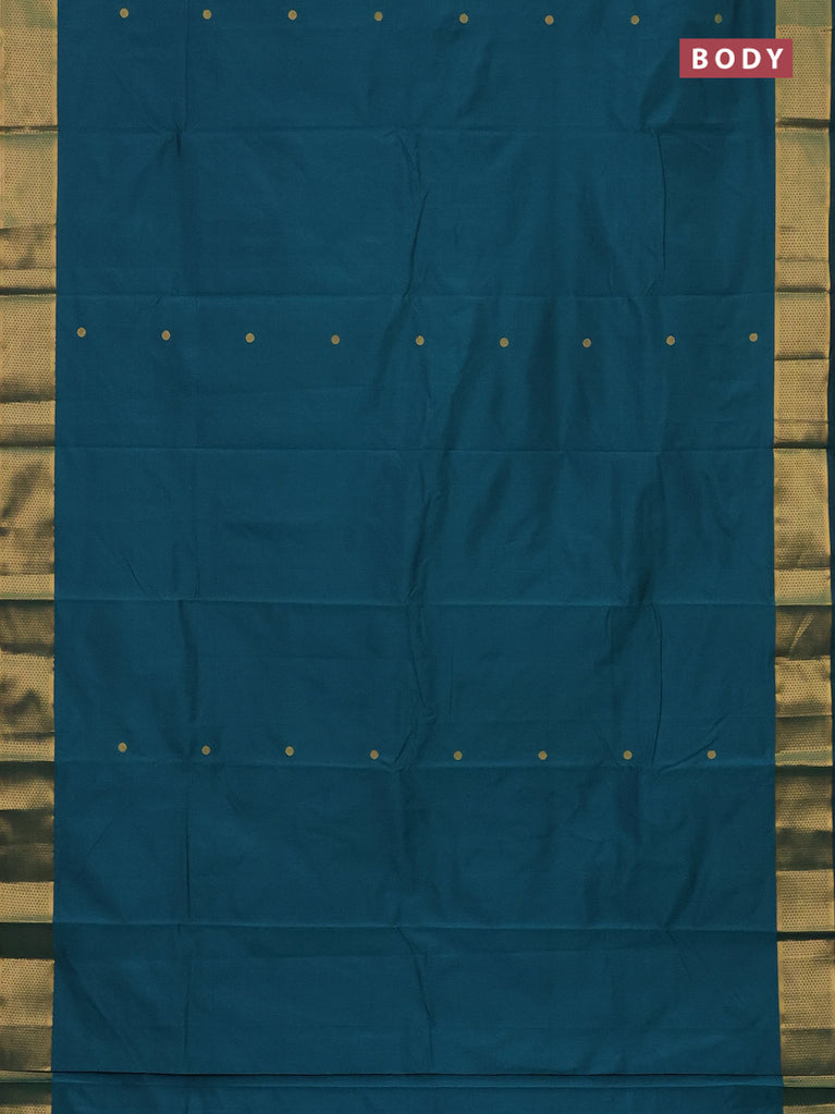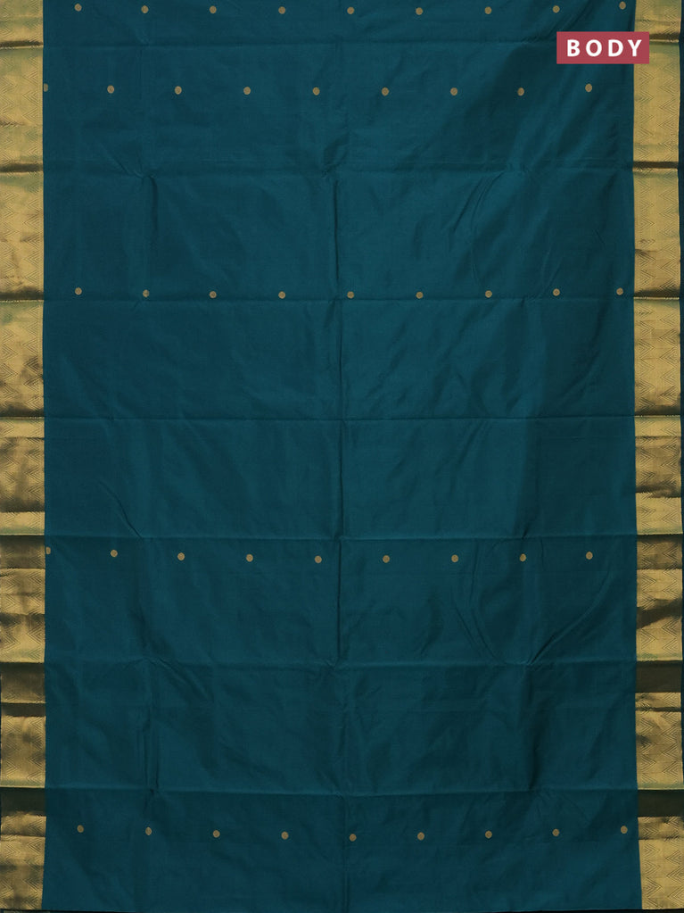 Arani semi silk saree peacock green with zari woven buttas in borderless style