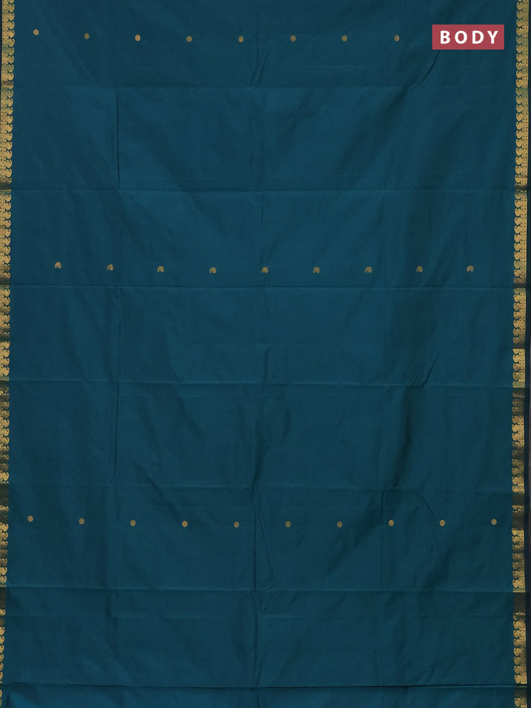 Arani semi silk saree peacock green with zari woven rudhraksha buttas and zari woven border