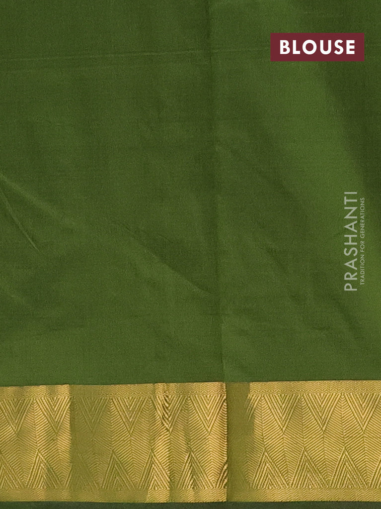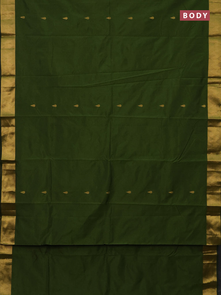 Arani semi silk saree sap green with zari woven thilak buttas and zari woven border