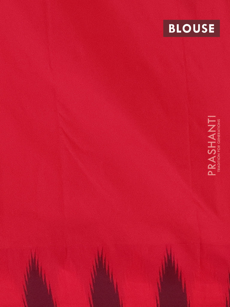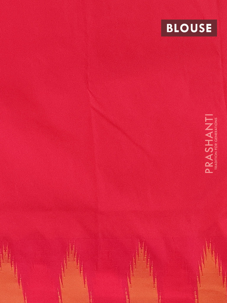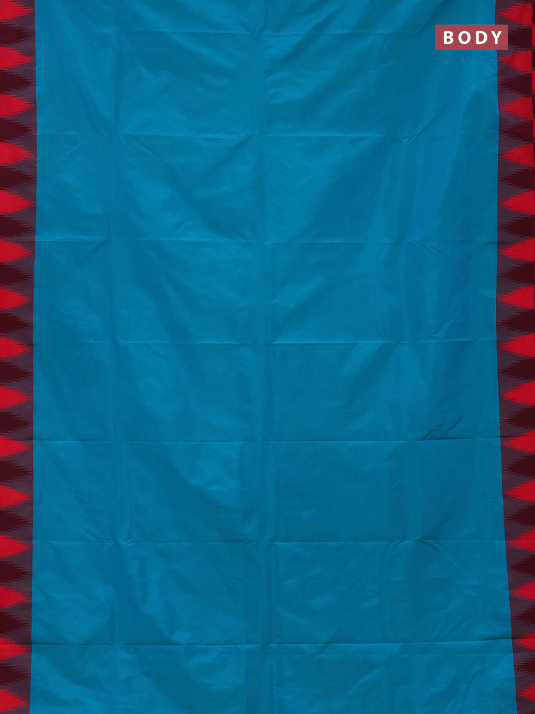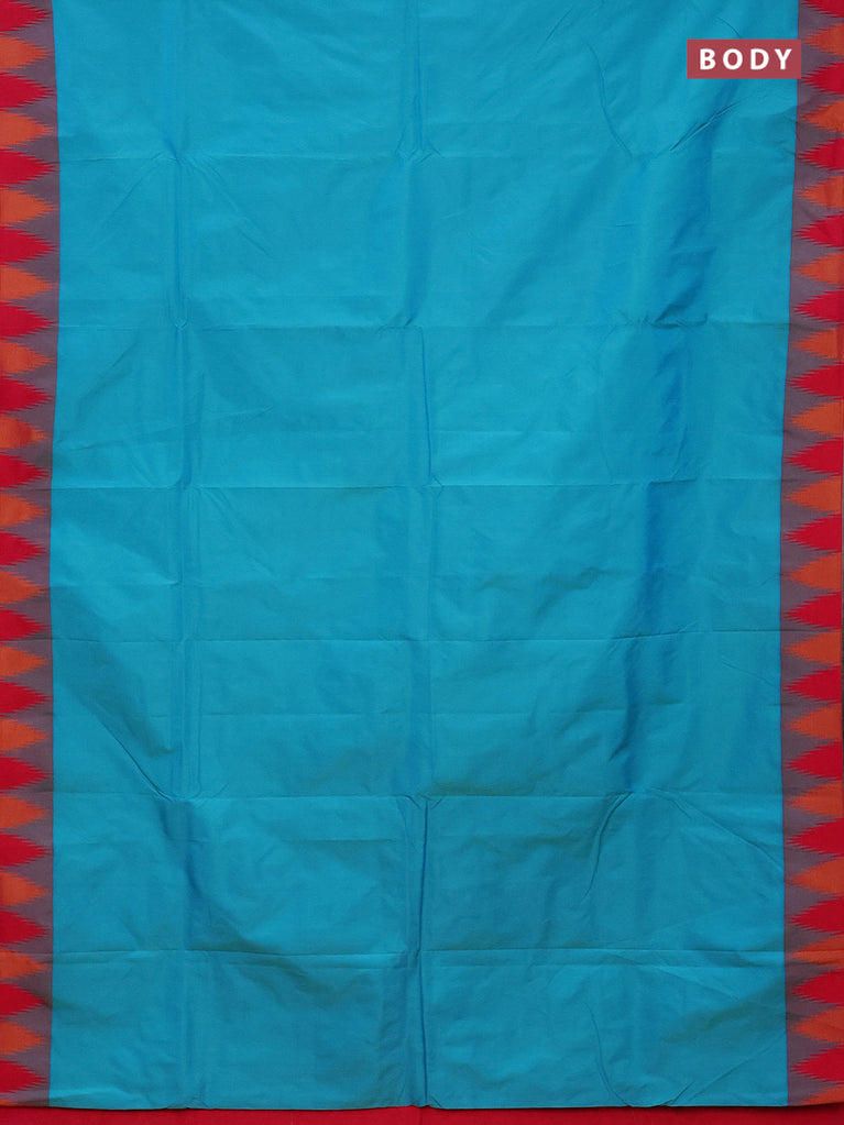 Arani semi silk saree teal blue and pink with plain body and temple design border