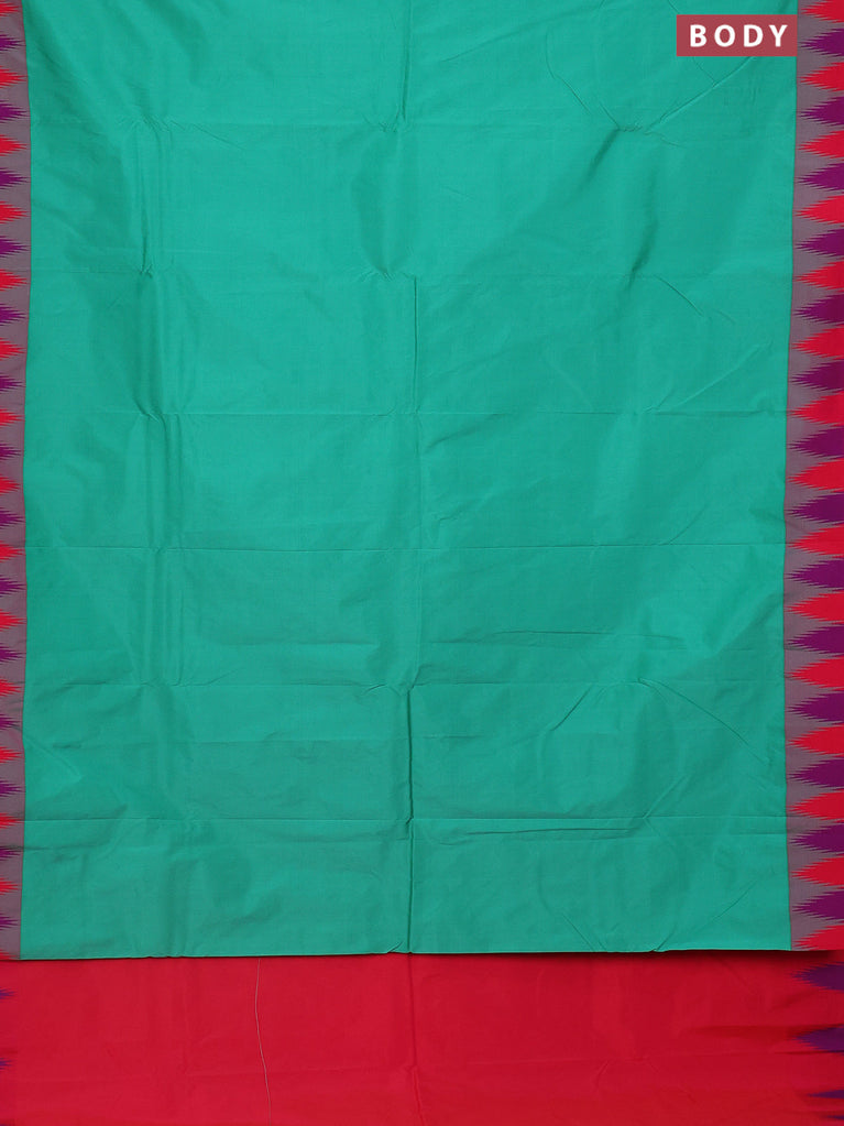 Arani semi silk saree teal green and dual shade of bluish pink with plain body and temple design border