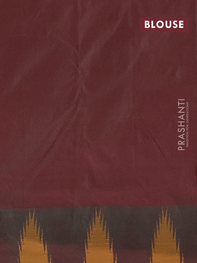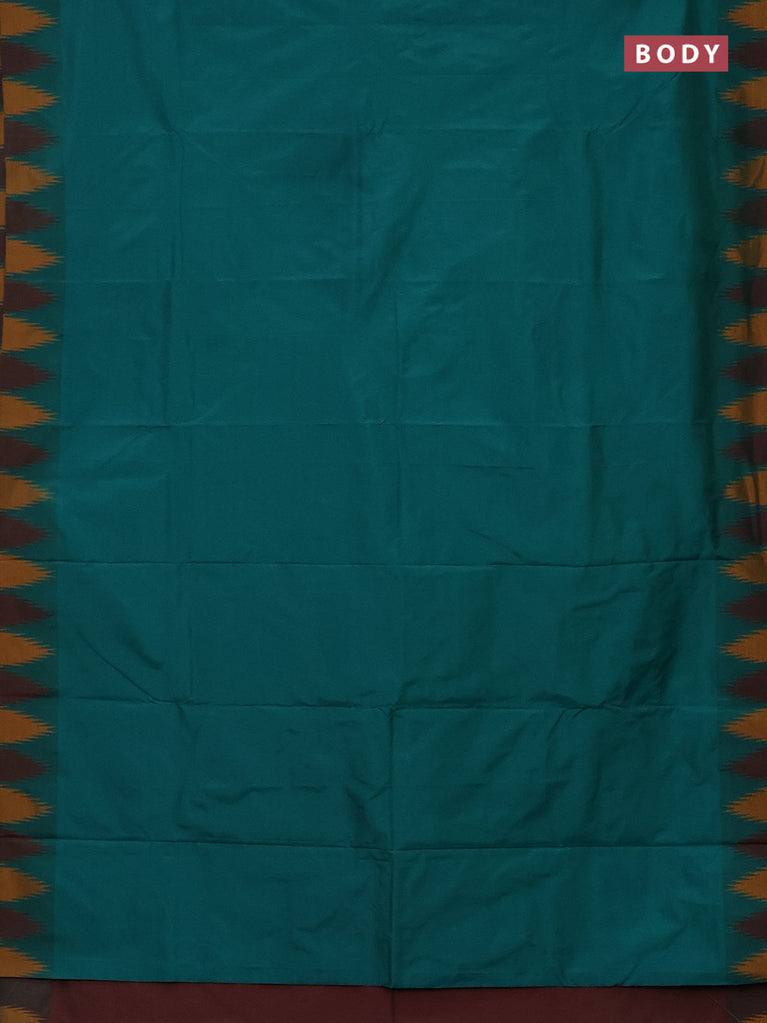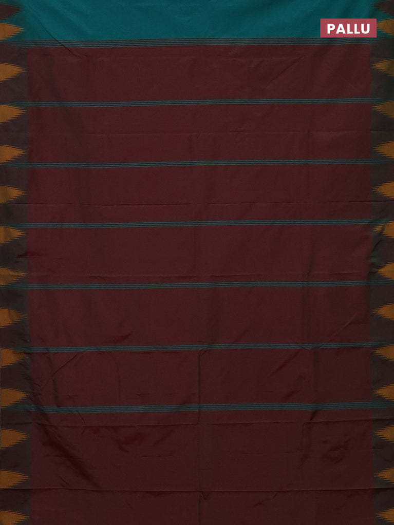 Arani semi silk saree teal green and maroon mustard with plain body and temple design border