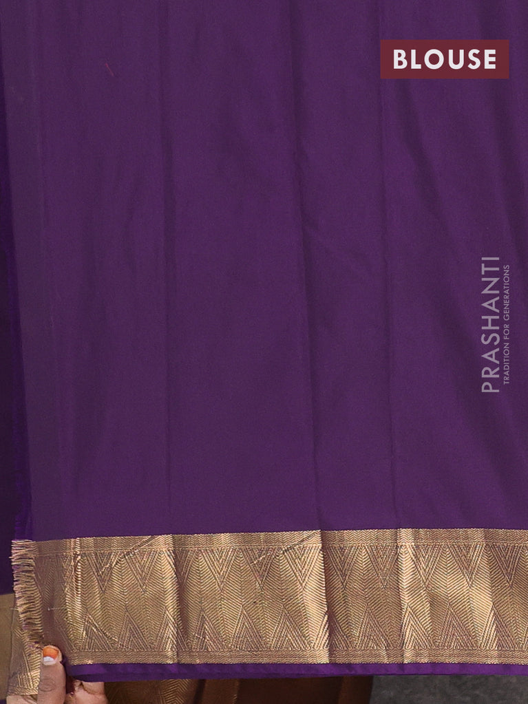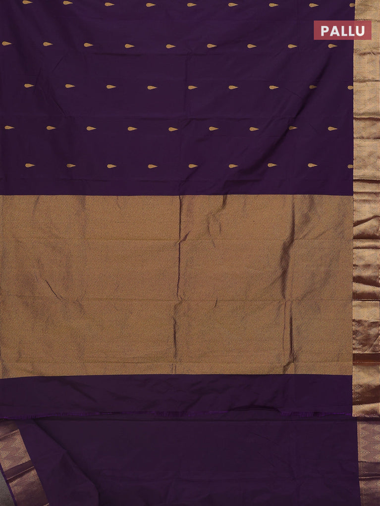 Arani semi silk saree violet and dual shade of green with copper zari woven buttas and zari woven butta border