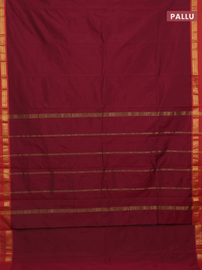 Arani semi silk saree wine shade and dark mustard with plain body and zari woven simple border