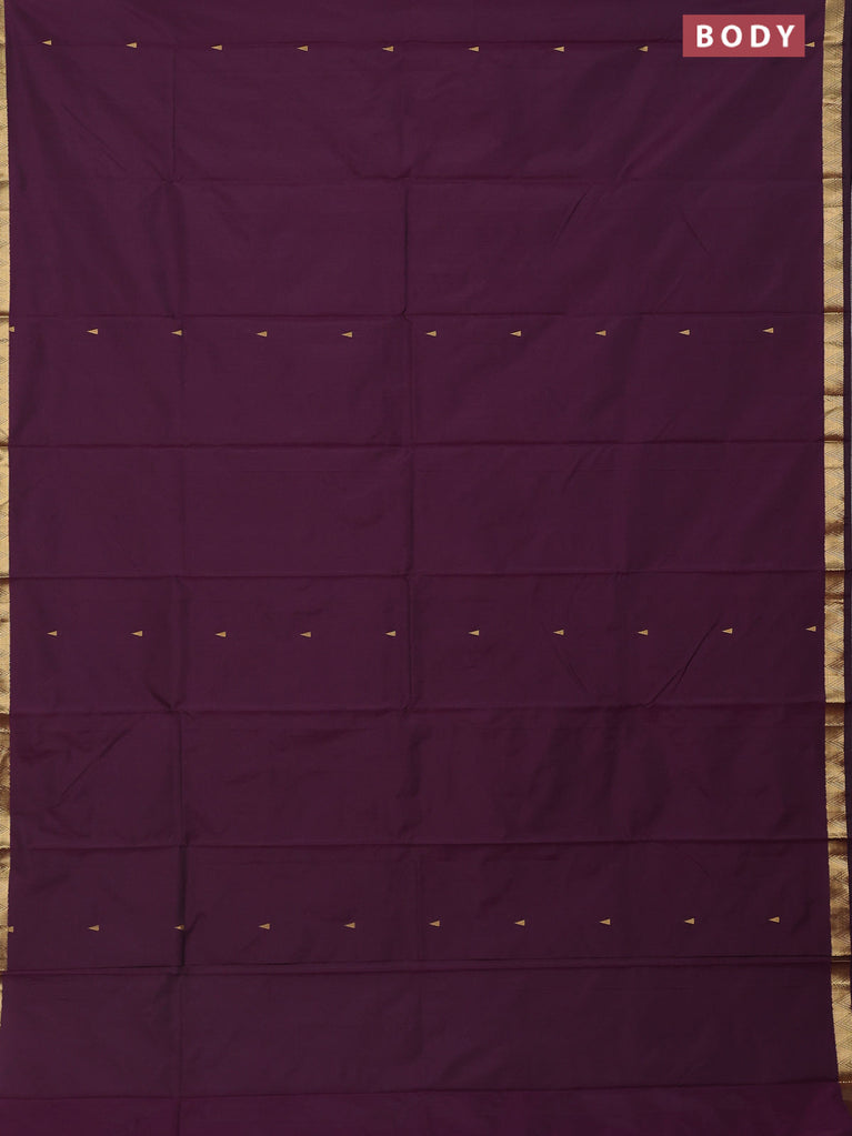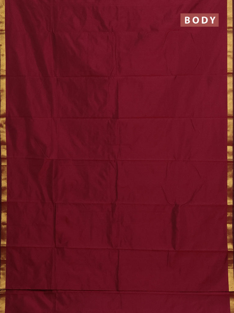Arani semi silk saree wine shade with copper zari woven buttas in borderless style