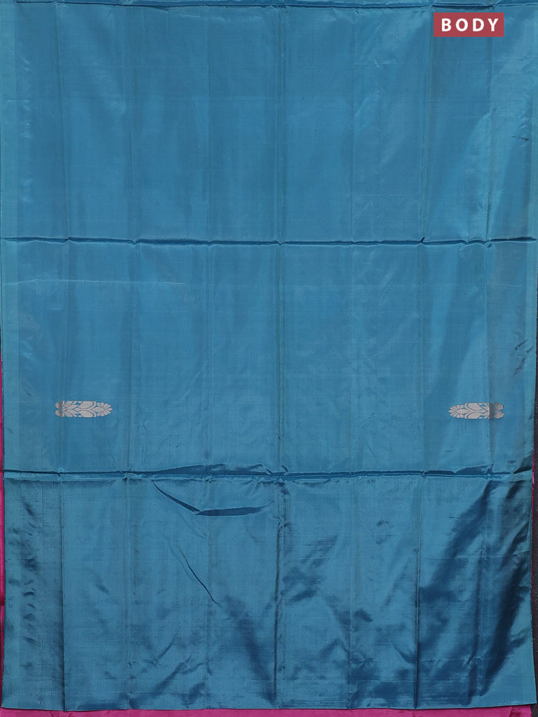 Banana pith saree teal green shade and maroon with thread woven buttas in borderless style