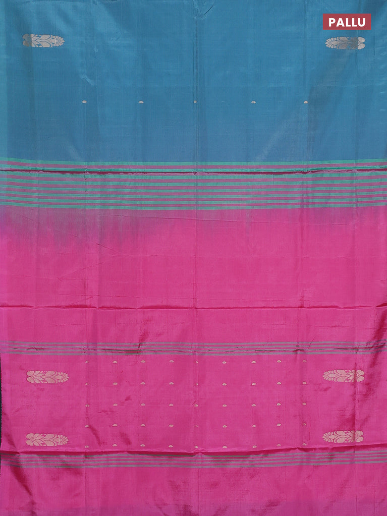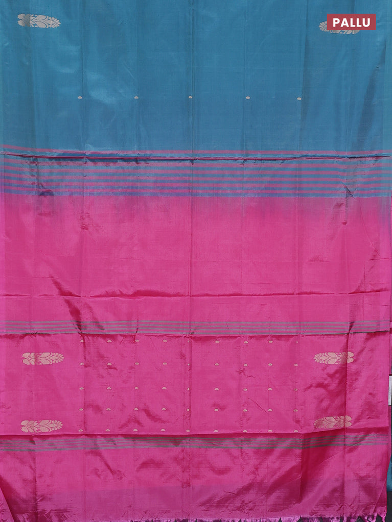 Banana pith saree teal blue and light pink with thread woven buttas in borderless style