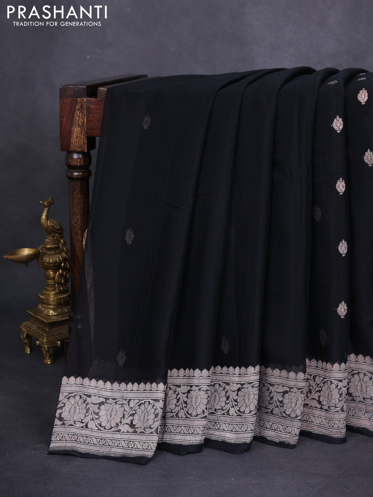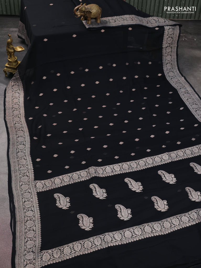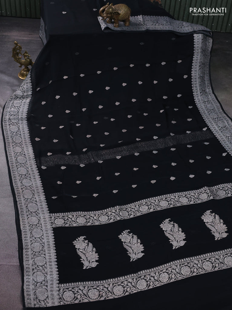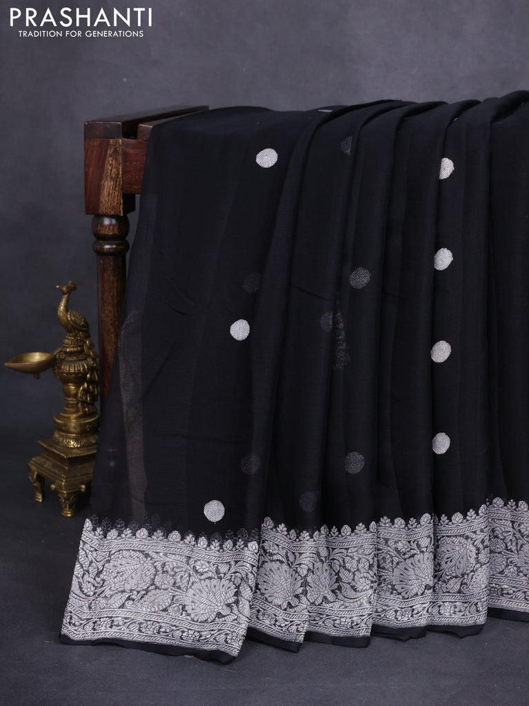 Banarasi chiffon silk saree black with silver zari woven buttas and silver zari woven border