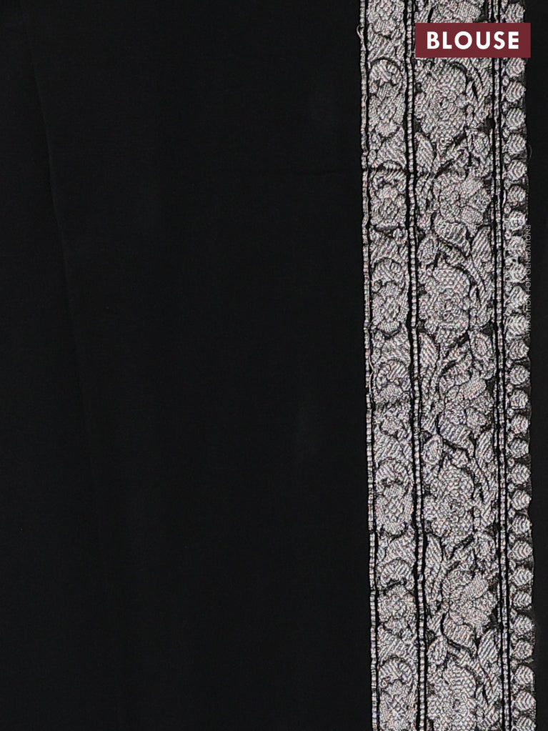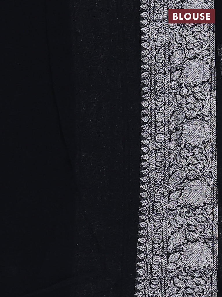 Banarasi chiffon silk saree black with silver zari woven buttas and floral silver zari woven border