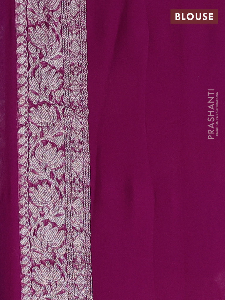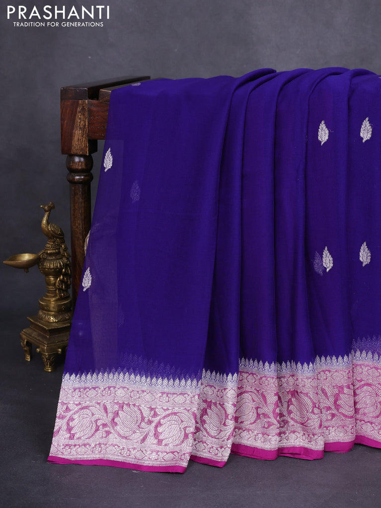 Banarasi chiffon silk saree blue and purple with silver zari woven buttas and floral silver zari woven border
