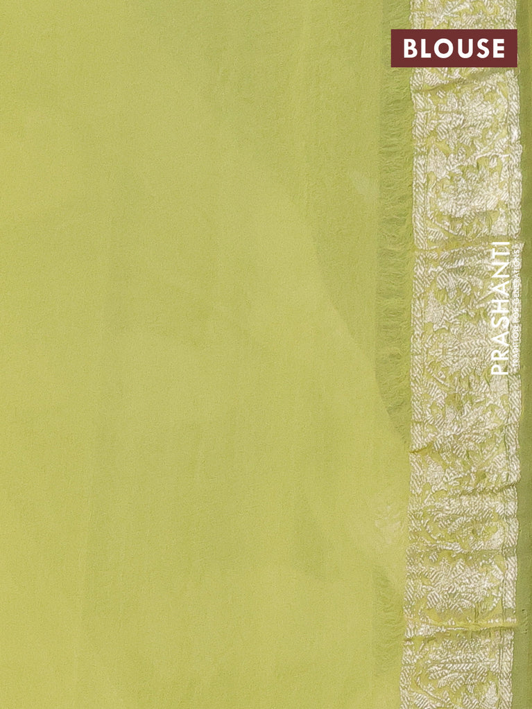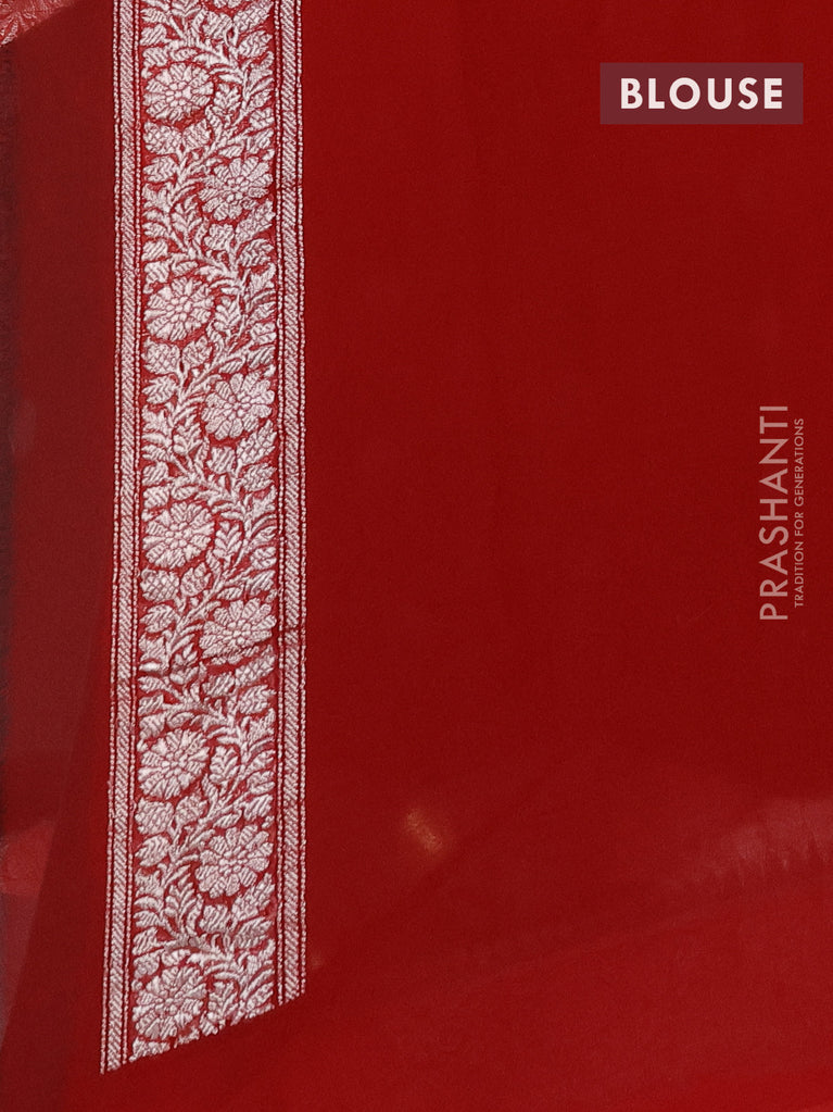 Banarasi chiffon silk saree bottle green and red with silver zari woven buttas and silver zari woven border