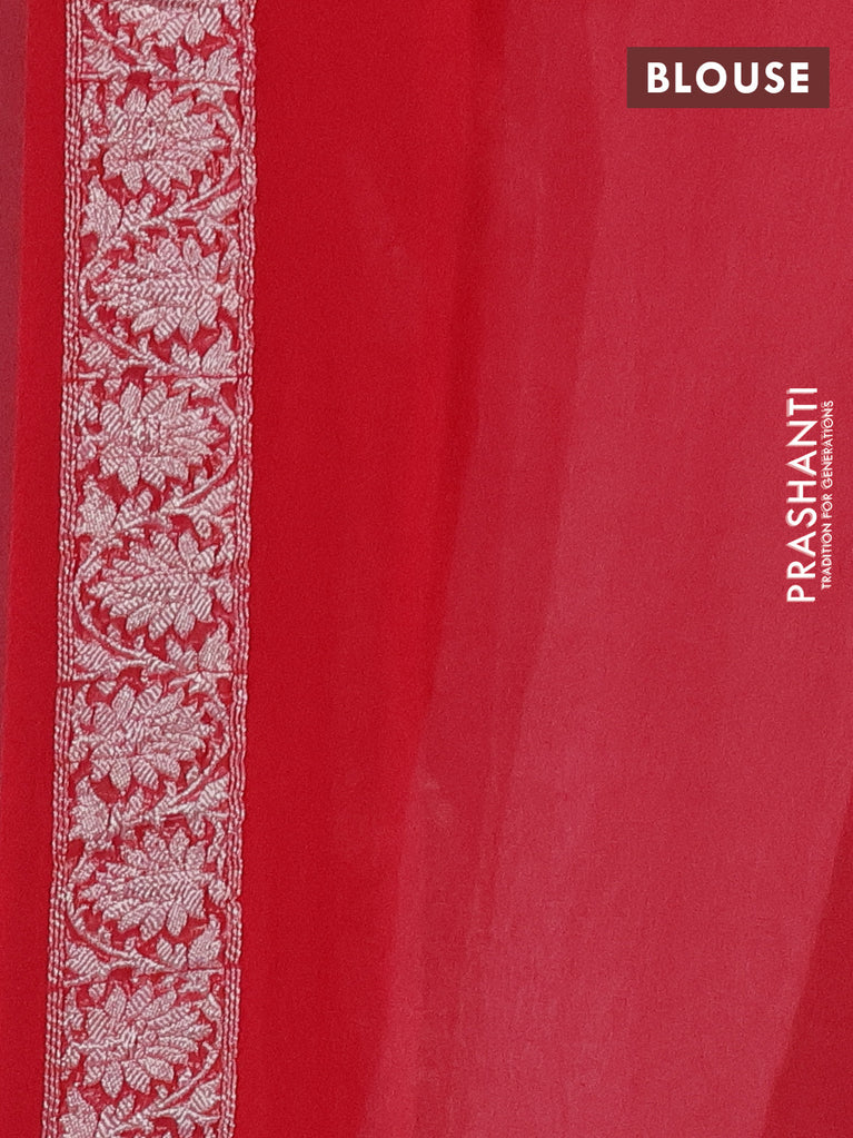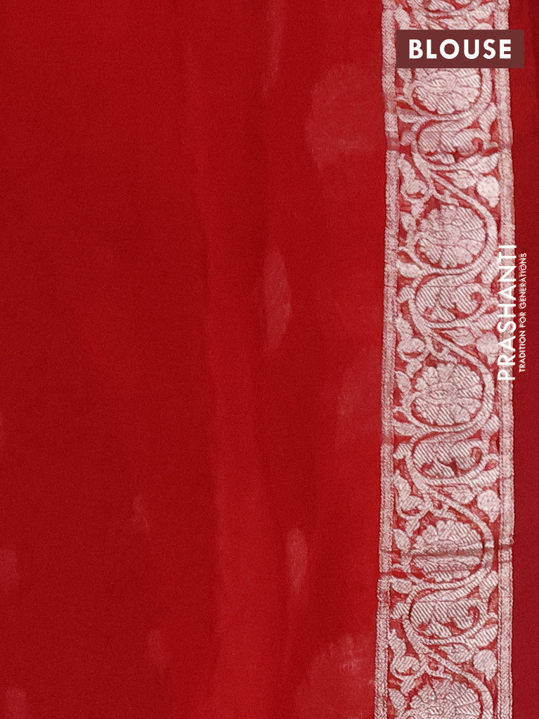 Banarasi chiffon silk saree baby pink and red with silver zari woven buttas and silver zari woven border