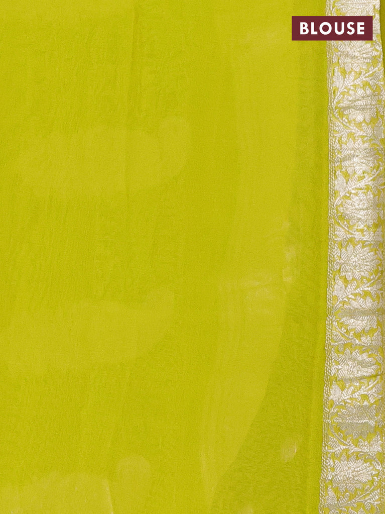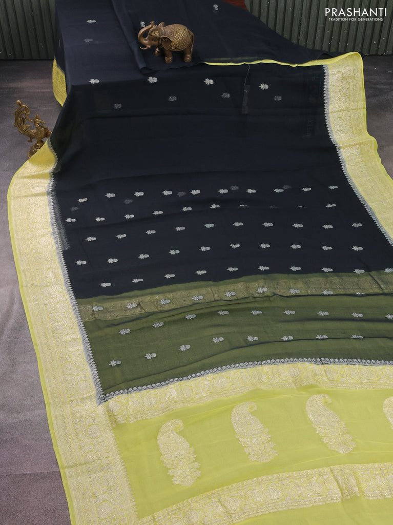 Banarasi chiffon silk saree black and pale yellow with silver zari woven buttas and silver zari woven border