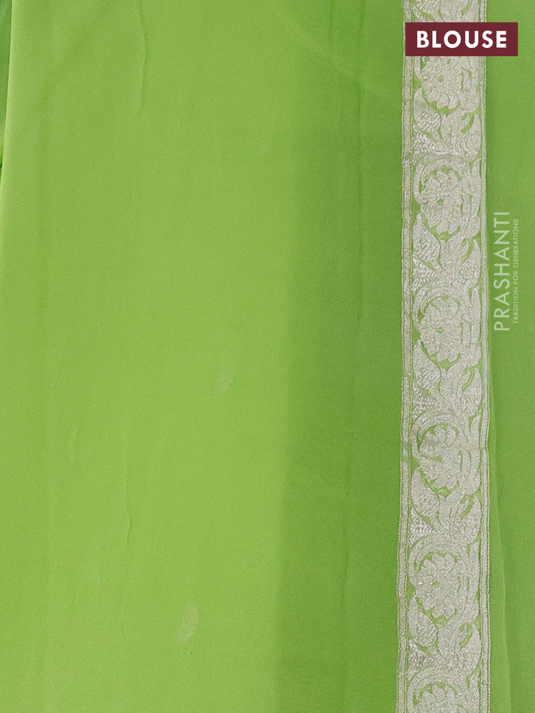 Banarasi chiffon silk saree green with silver zari woven buttas and silver zari woven border
