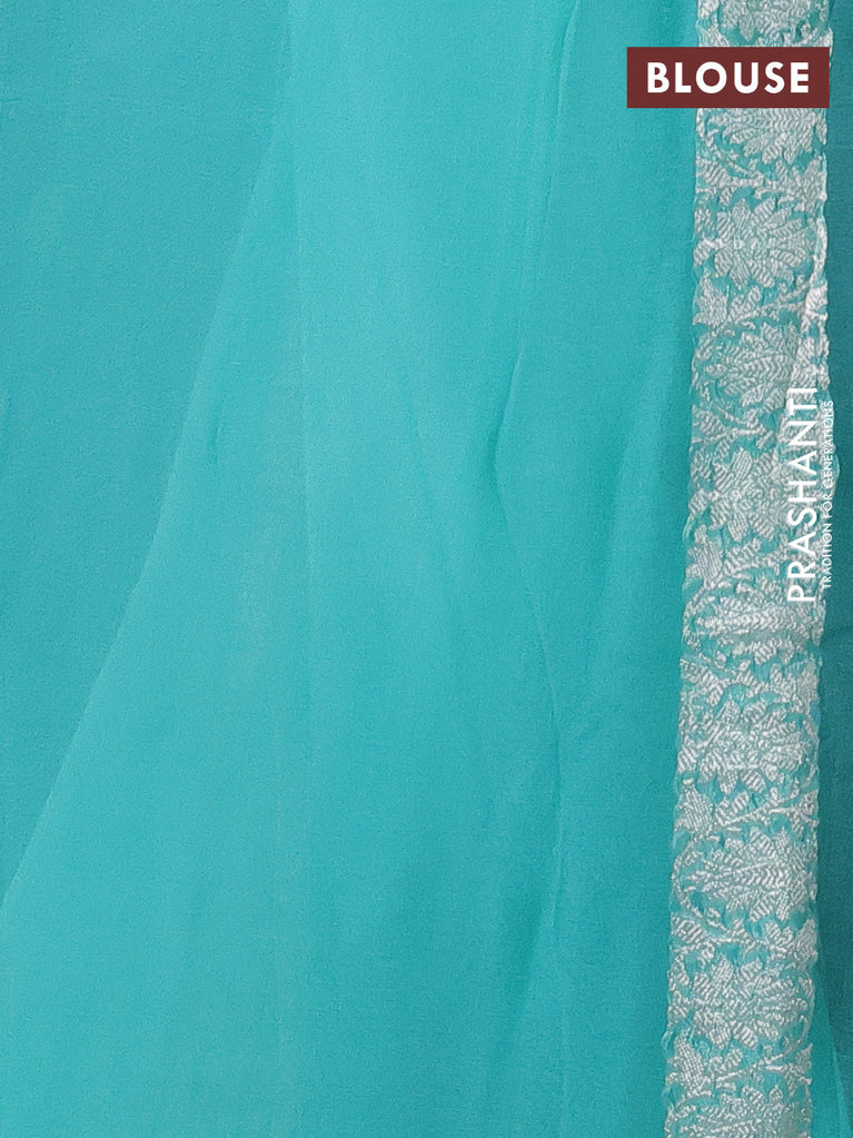Banarasi chiffon silk saree light blue and teal green with silver zari woven buttas and silver zari woven border