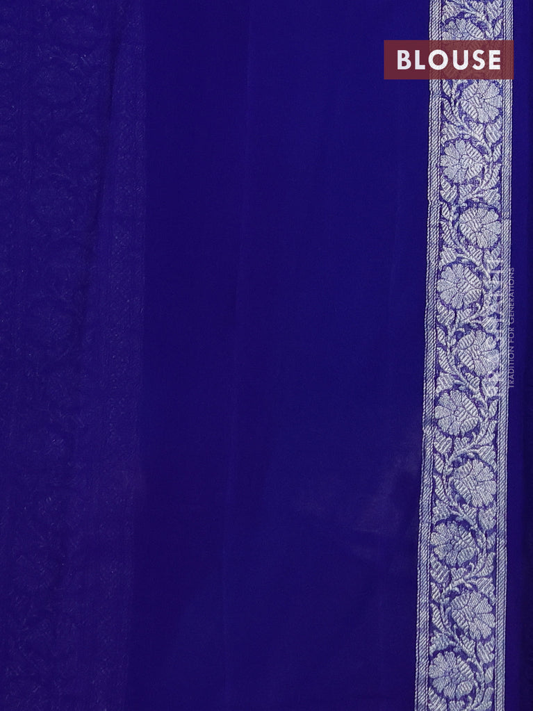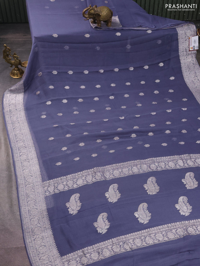 Banarasi chiffon silk saree cs blue and blue with paisley silver zari woven buttas and floral silver zari woven border