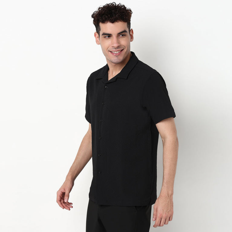 Camp Collar Half Sleeve Striped Structured Solid Bae Shirt