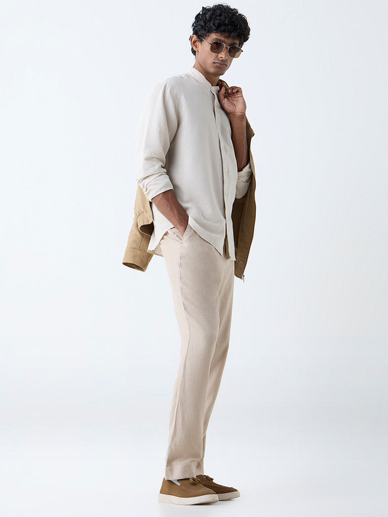 Ascot Beige Solid Relaxed-Fit Linen-Blend Shirt